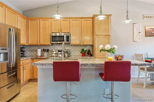 HOT RENTAL SPECIAL! READY TO SAVE $1,375? HALF MONTH FREE OFF FIRST MONTH'S RENT!! This beautiful updated condo offers 1,681 sq. ft. of open living space, with a kitchen that is a culinary delight, high ceilings, and abundant natural light. The modern kitchen features granite counters, mosaic tile backsplash, new stainless steel appliances, pantry-height cabinets, and a dining area that opens to a private balcony. Both bedrooms are spacious enough for king beds, with bathrooms updated with vessel sinks. Enjoy fresh interior paint, custom lighting, barnwood accents, and elegant vessel sinks. Additional highlights include an attached 2-car garage, two balconies with partial mountain views, and nearby walking trails. Located in the sought-after Cherry Creek School District, this condo perfectly blends comfort, convenience, and modern style. Condominium MLS# 2055039