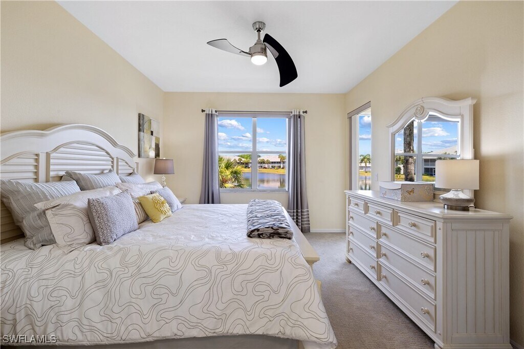 Available for 2026 Off Season Only. Are You Ready for Endless Sunsets? This darling & immaculate 2 BR 2 Bath,1st floor end unit has rear Western exposure overlooking a lake that will provide non-stop breathtaking sunsets! Decorated in gorgeous coastal colors and furnishings,this unit is offered fully furnished & turnkey. Featuring a split level floor plan along with granite counters and light & bright eating area. Spacious master bedroom with walk-in closet,attached bath with double sinks and a large shower. Separate & private guest room with a large walk-in closet & full bath right next to it. You will love the great room that walks out to a screened lanai offering stunning lake views. Stonebridge is a friendly,amenity rich,gated golf country club community. It has a gorgeous Clubhouse where both fine & casual dining are offered. In addition,there is an attended state of the art fitness center,5 Har-tru lighted tennis courts,and a very challenging 18 hole golf course. This fantastic North Naples location is 10 minutes to the beach and within minutes to fabulous shopping,restaurants,and nightlife of Mercato.