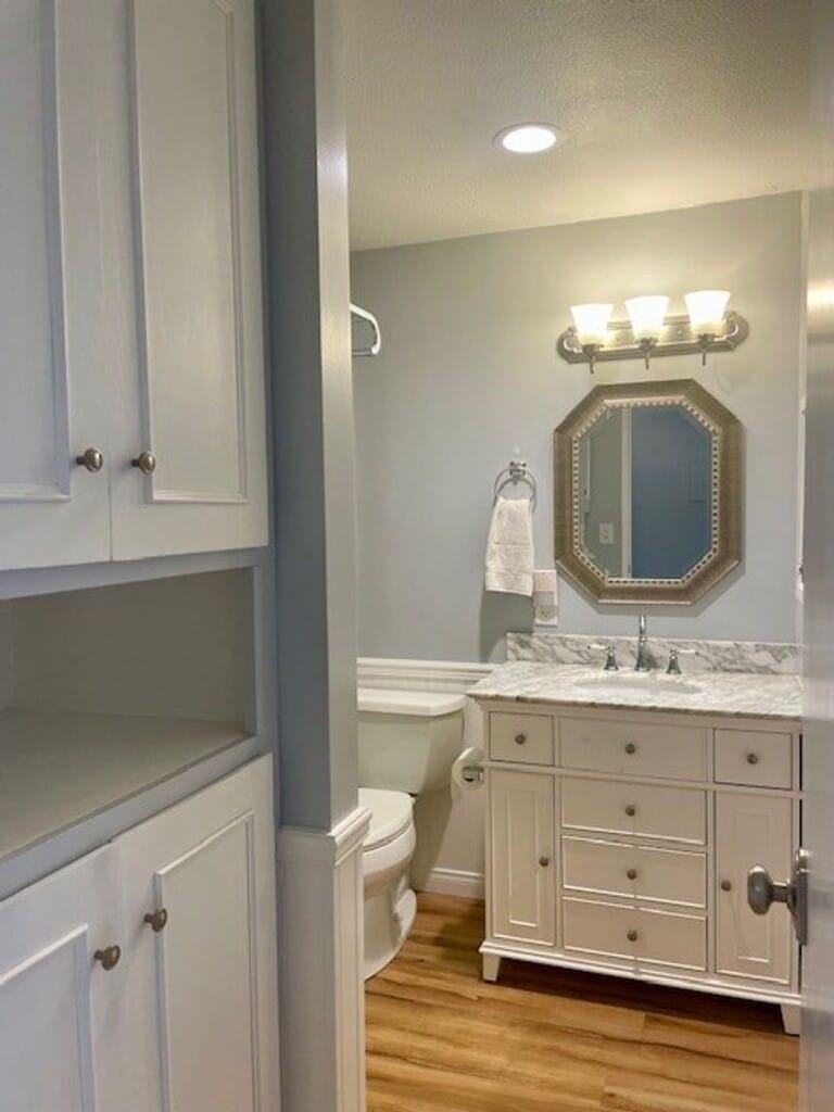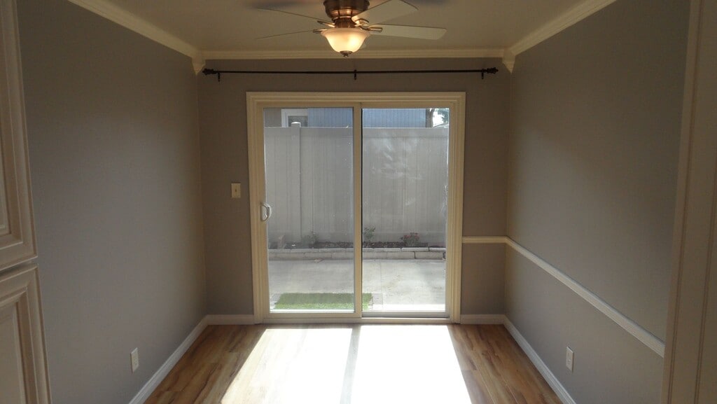 THIS UNIT ONLY ALLOWS PARKING FOR 2 CARS Nicely remodeled 1 Bedroom 1 Bathroom ground level, end unit Condo with no one above you, located within walking distance to the Village at Orange shopping center. Rarely available condo in the Coco Palms Community that is in the VILLA PARK SCHOOL DISTRICT. Modern vinyl wood plank flooring throughout the home, as well as newer vinyl windows. Bedroom has carpet and mirrored closet doors, Bathroom boasts a beautiful, highly upgraded walk in shower, granite counter vanity and extra storage. Remodeled spacious kitchen has dining area with New Dishwasher, ceiling fan, Corian countertops, LED canned lights, updated cabinets with slow close doors, pantry with slide out shelving, New Water heater, microwave oven, and refrigerator is included but without warranty. Slider door leads out to the private patio, perfect for entertaining friends or just to relax. HOA Community Pool just steps away from the unit. Central heating and AC. On site coin laundry room. 1 reserved parking space close to the property and 1 car detached garage. Trash and water included, tenant only pays Electric and Gas. This ideal location is walking distance from Trader Joe's and Starbucks, easy access to 55/91/57 freeways.