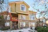 Fantastic 3bd low maintenance townhome in Aurora backing to open space! Tour now in 3D ft - Real hardwood floors & grand 2 story entrance flow nicely into the spacious great room w/soaring vaulted ceilings & cozy gas fireplace. Modern kitchen is equipped with w/stainless appliances, gas stove & walk-in pantry. Well designed floorplan for today's lifestyle w/upstairs boasting two en-suites w/ attached full bathrooms & upstairs laundry. Impressive primary suite features a beautiful 5pc bath, soaker tub, dual sinks & walk in closet. Secondary en-suite has attached full bathroom. Descend to the finished walkout basement w/family room, full bath & 3rd non-conforming bedroom, perfect for hosting guests, movie nights or flex space. Enjoy the covered patio overlooking the open space. Parking is a breeze w/2 car attached garage. Walk to trails & parks & dining/shopping is just minutes away. Enjoy two community pools & tennis court.