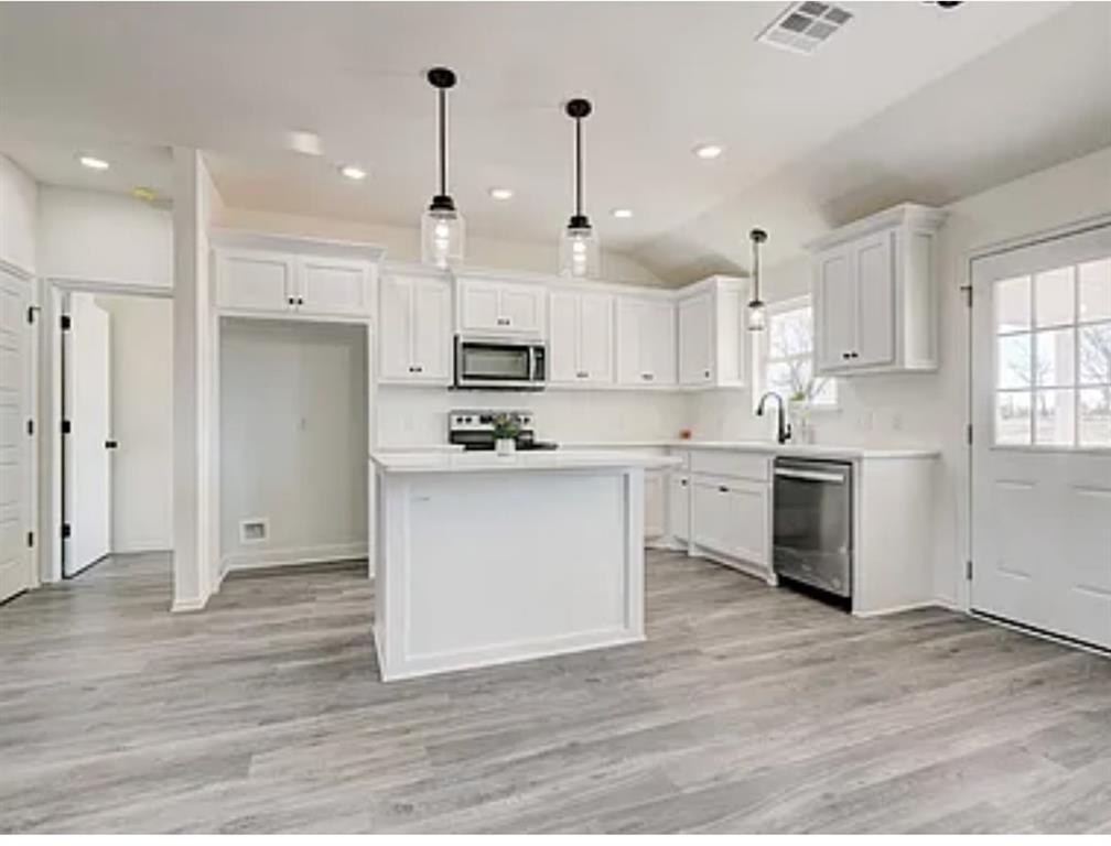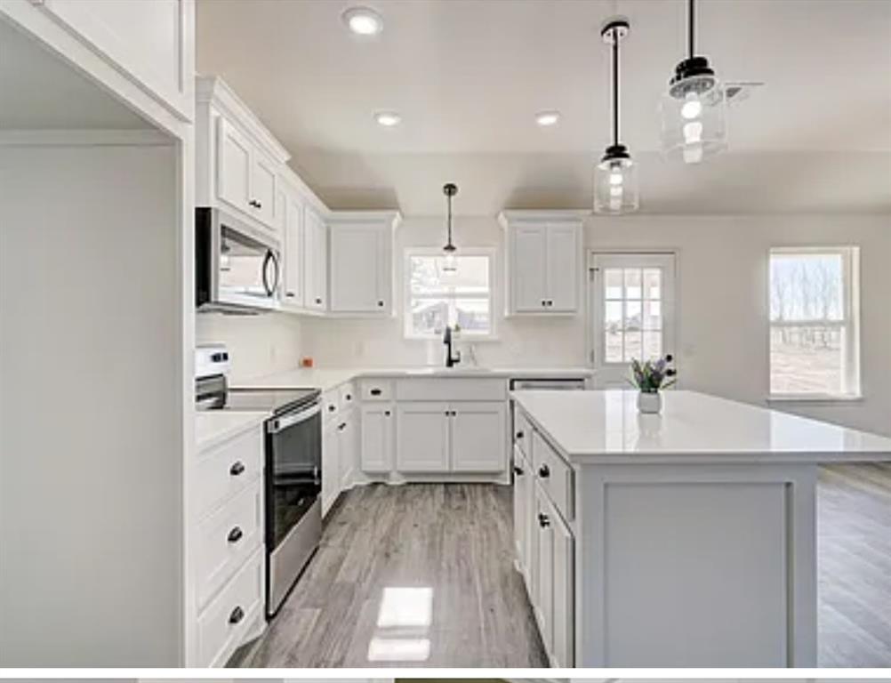 Beautiful Home on 3/4+ Acres. You'll Love this 4 Bedroom,2 Baths home w/ a Large Open Concept,High Ceilings,Beautiful Lighting,Large Windows Allows Tons of Natural Light in. Fireplace Electric. This Home Boasts Large Modern Country Kitchen w/ Beautiful Quartz Counter Tops,Large Island,White Shaker Cabinets w/ Tons of Storage,Pantry & an eating area ~ Gives this Home a Crisp,Modern Farmhouse look. Owner's Suite w/ Large Windows,Ceiling fan,& Walk-in Closet. En-suite with Double Vanities,Shower & Tub. Additional Bedrooms w/ Ceiling fans & Walk-in closets. Home features Luxury Vinyl Wood-look flooring Through out. Covered Patio~ Great for Entertaining or Grilling! Designer Colors,Tilt-in / Low-E Windows ~ Lets in a Lot of Natural Light ~ while helping you save money. Schedule Your Tour Today.
