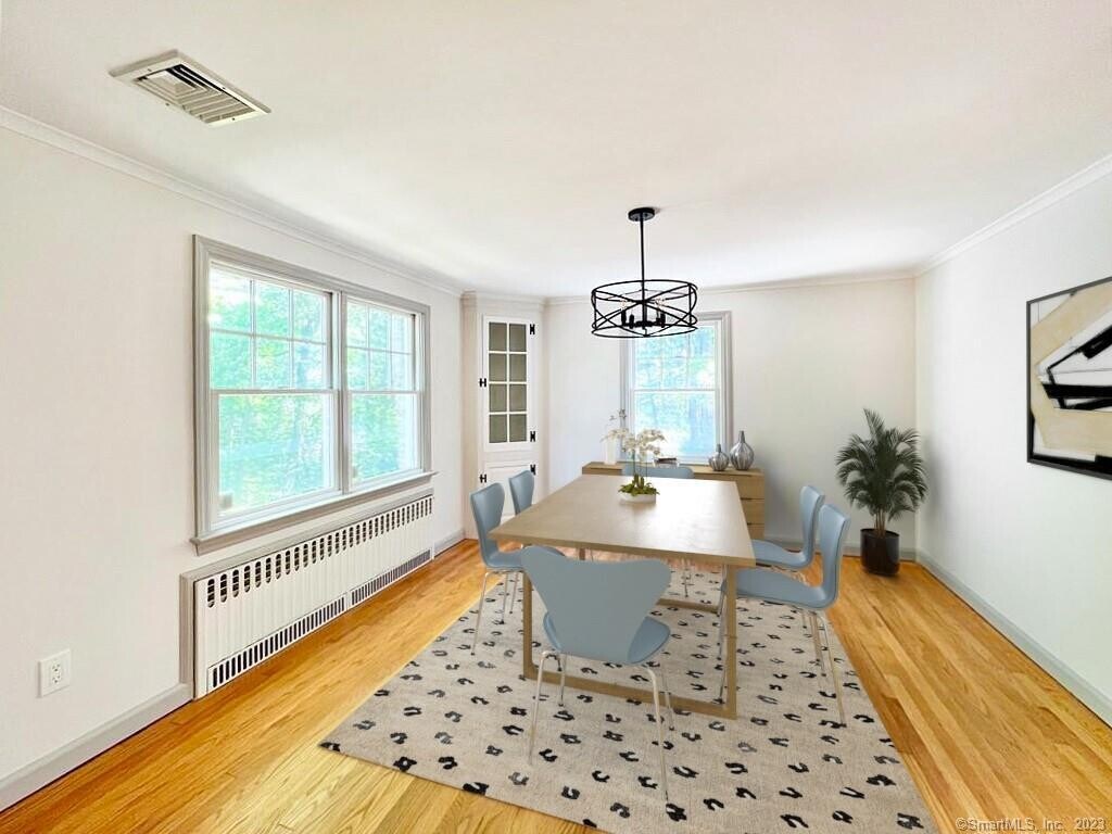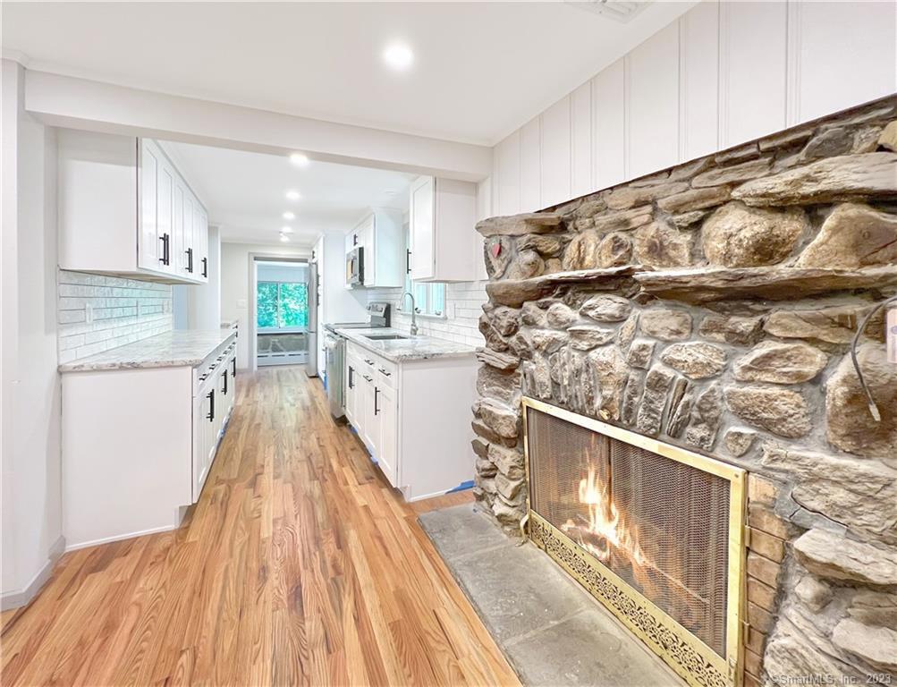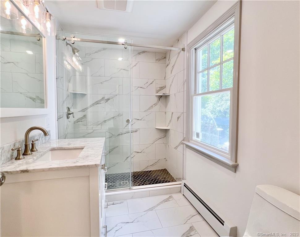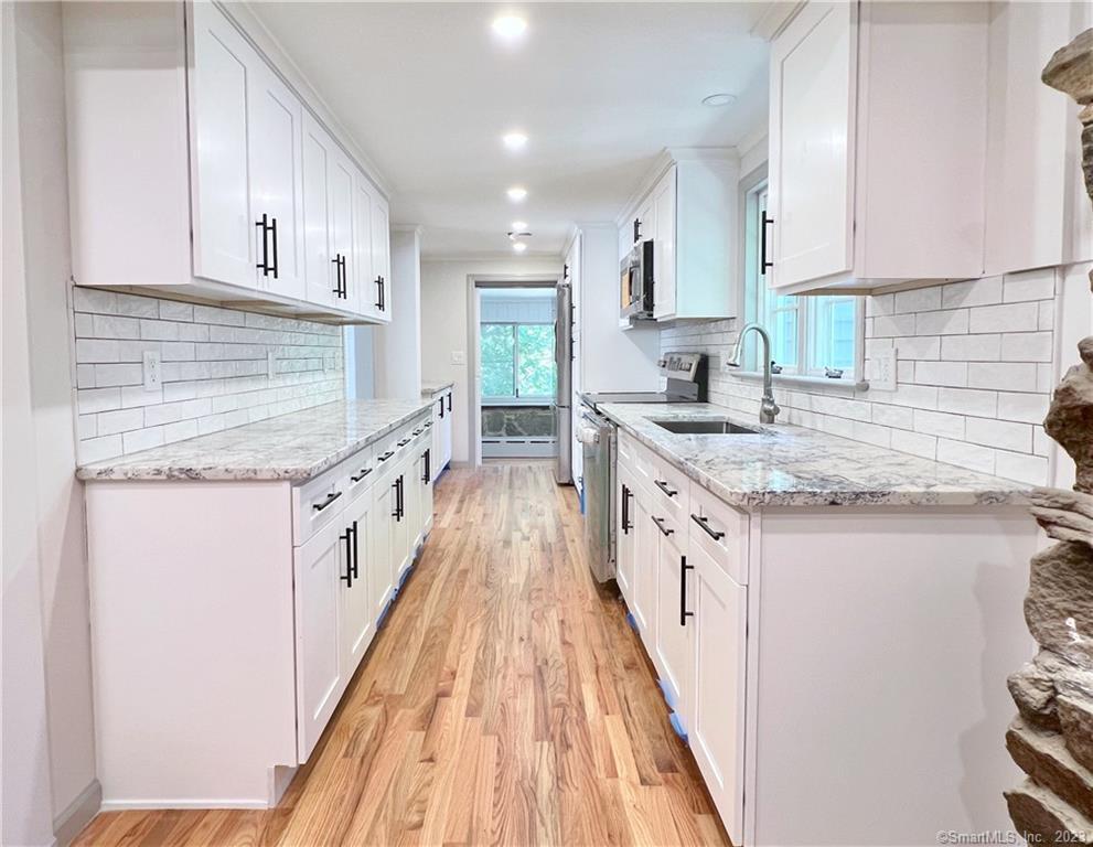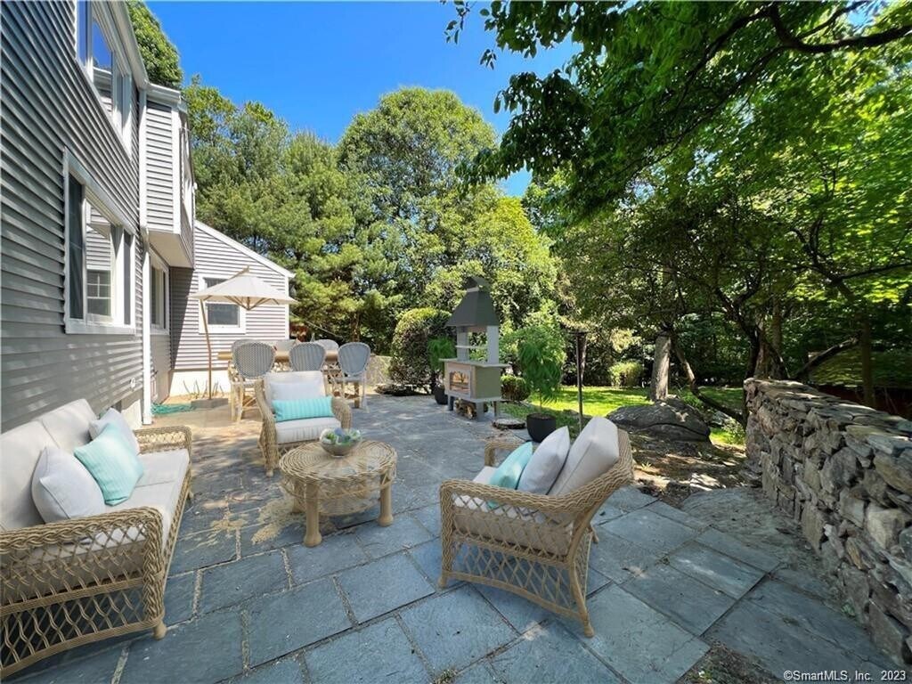 Call for Availability - 4 bedrooms / 2.5 baths ~ Spacious, sunny and spectacular! This beautifully renovated Colonial offers 4 bedrooms (primary on main with en-suite bath, 3 up), 2.5 baths. The home is privately sited on lush acreage south of the parkway. Tucked away ~ yet close enough to walk to shops & restaurants. The main level finds a large sun-filled living room with picture windows, wood burning fireplace and reading nook, formal dining room, newer gourmet eat-in-kitchen with fireplace features beautiful white granite counter-tops, stainless-steel appliances & pretty cabinets, first floor primary bedroom with indulgent newer en-suite bath, sun/mud room off the kitchen with powder room and laundry closet (newer washer/dryer) completes. Step out back to your private entertainer's stone patio overlooking the abundant wooded oasis. Back inside, the upper level provides 3 bedrooms each featuring a pretty stained-glass accent window & ample closets, along with a newer full bath with shower/tub. Detached barn/1 car garage, 1 car carport, plenty of off-street parking (room for 5+ cars), charming workshop/studio and sheds add to the rich allure of this fabulous home. Storage galore! Minutes to all Stamford amenities & major routes. Simply, move-in, unpack and enjoy this tranquil gem. Newer; siding, interior painting, hardwood floors, kitchen, baths, laundry, ... makes this a must-see home! MLS# 24129658