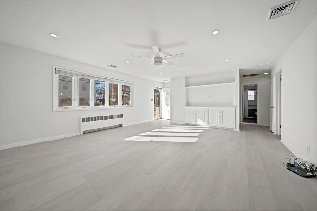 Fully Renovated Single-Family Home Floor #1 - Available for Immediate Move-In Welcome to this beautifully fully renovated single-family home located on one of the most desirable and picturesque blocks in town. Offering immediate move-in, this sun-filled home combines comfort, space, and convenience. The main level features a spacious living room, three generously sized bedrooms, a modern kitchen, in-unit laundry, and driveway parking. The home has been freshly painted and showcases brand-new flooring throughout, creating a clean and contemporary feel. Step out from the kitchen to a huge private side yard, perfect for outdoor enjoyment, entertaining, or relaxing while taking in beautiful skyline views. The home is flooded with abundant natural sunlight throughout the day. Commuters will love the steps-away bus access to NYC and easy access to major highways, making this home both serene and highly convenient. A rare rental opportunity in an exceptional location don't miss it! Tenant pays -1.5 month security deposit, utilities, 1 month broker fee, & renter's insurance is a requirement.
