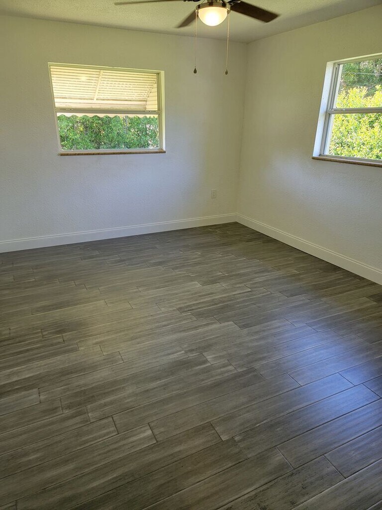 Amazing 3/2 was just completely renovated with new stainless appliances, soft-close wood cabinets, hardware, ceiling fans and fixtures, laminate flooring, paint and washer/dryer. This home is on a corner lot with easy access to shopping, schools and restaurants. Three bedrooms, two full bathrooms, full kitchen, indoor laundry, and large screened patio are ready to go! Pets welcome at owner's discretion. Will not last! Call today to view at .