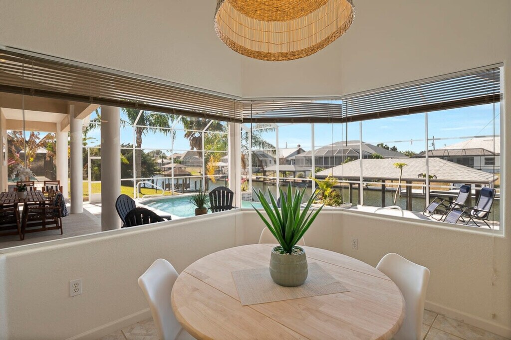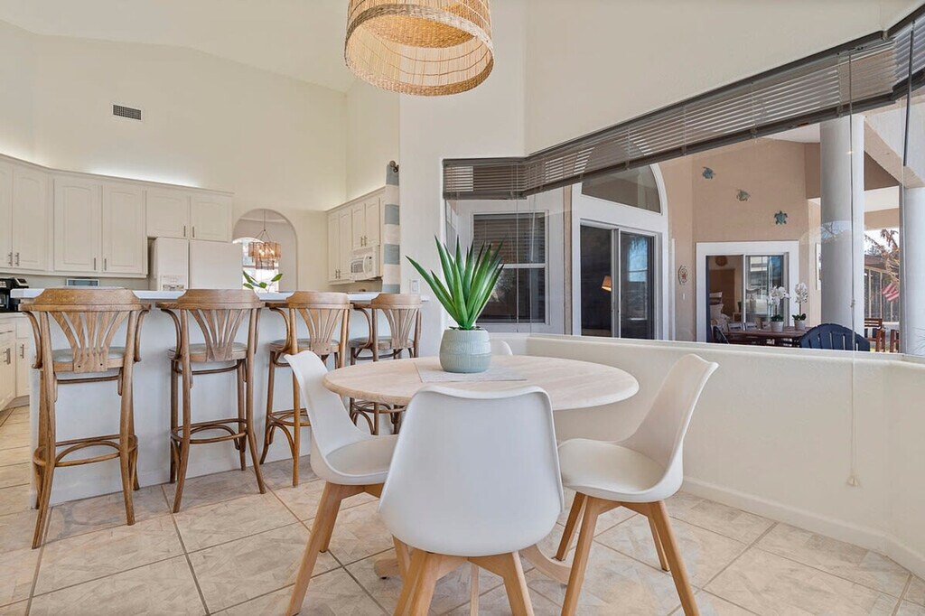 Feel at home in this newly renovated 4-bedroom, 4-bathroom home on a saltwater canal. This unique two-story home is designed for entertainment and relaxation. It features voluminous ceilings, arched entries, an infinity pool, a spa, a fully equipped kitchen, a formal dining room, and a game room with a pool table. Enjoy the convenience of first-floor living, with a private upstairs bedroom for added privacy. Two bicycles and a kayak are available for use. The kitchen, living room, master bedroom, and game room all have frontage to the infinity pool and spa, followed to the boat house which has electric and water. The pool heater is available for $50 per day, $287 per week, or $200 per week for multi-week stays. Pets are welcome with a fee of $100 per pet. Nestled in the scenic city of Palm Coast, Florida, the Palm Harbor neighborhood offers a serene and idyllic setting. With lush landscapes and views of the Intracoastal Waterway, this community embodies coastal living. Enjoy picturesque streets, waterfront promenades, and convenient access to beaches. Palm Harbor is known for its vibrant boating culture and offers an array of amenities including parks and golf courses. Convenient access to shopping centers, restaurants, and entertainment venues ensures that residents have everything they need. Quiet hours are between 10:00 PM and 7:00 AM. If you plan to bring a trailer or RV, secure off-site parking is available approximately 7-10 miles from the property for $25 per day per unit. Due to city regulations, trailers and RVs are not permitted to be parked at any city properties, and parking on the lawn is prohibited. All vehicles must be parked in the driveway only. Registration Number: 28--0