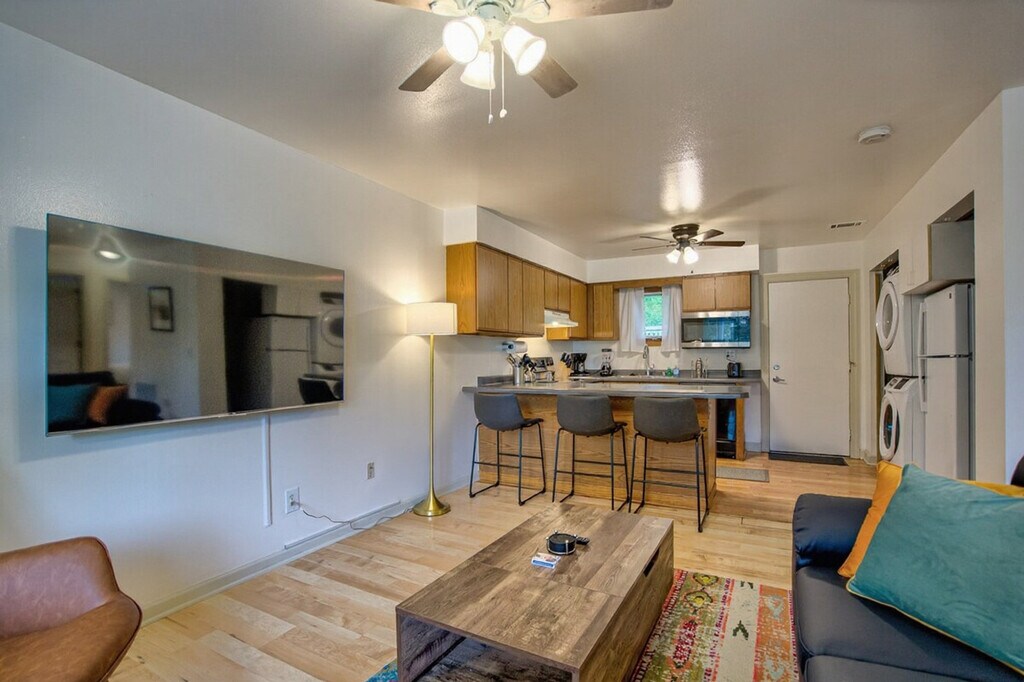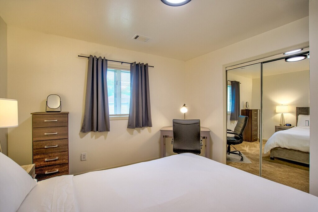 Welcome to this comfortable 2-bedroom house, ideally suited for your business trip. As a single-level home, it ensures easy access, so you can feel at home. The master bedroom offers a king-size bed for a restful night, and the second bedroom provides a full bed. The open kitchen is fully equipped, allowing you to prepare meals. Enjoy the convenience of an in-unit washer and dryer. Relax in the living area, featuring a 65-inch Roku Smart TV for your entertainment. There are parking spots right outside the house for your vehicle. Located in a quiet subdivision on the near West Side of Madison, this house is 2.5 miles to UW Hospital, the VA, and the Children's Hospital, 3.8 miles to the UW School of Business, 1 mile to Hilldale Shopping Center that has shopping, food, and a movie theatre, and 5 miles to the Capitol. Smoking is prohibited, and any smoking will result in immediate cancellation of the reservation with no refund for the entire stay. The charge to remediate smoking is the actual costs of complete environmental remediation or $3,000, whichever is lower. Excessive noise violations after the first complaint will result in cancellation of the reservation with no refund. If pets are on the premises without advance written permission, the charge will be the actual costs of complete environmental remediation or $3,000, whichever is lower. If there is damage to the apartment and we are not notified, it can result in cancellation of the reservation. Missing or destroyed fixtures or personal property will result in the actual replacement cost plus a restocking fee of $50. Please keep the apartment, furniture, dishes, linens, and towels reasonably clean during your stay. Dirty towels and linens can be washed in the washer and dryer. Kitchen supplies should not be ruined or full of old food when you check out. Please only use the black towels for makeup removal. If you are staying in a pet-friendly apartment, pet waste should be cleaned up and disposed of in the outside trash. Includes a dedicated workspace, perfect for remote work. [SI]