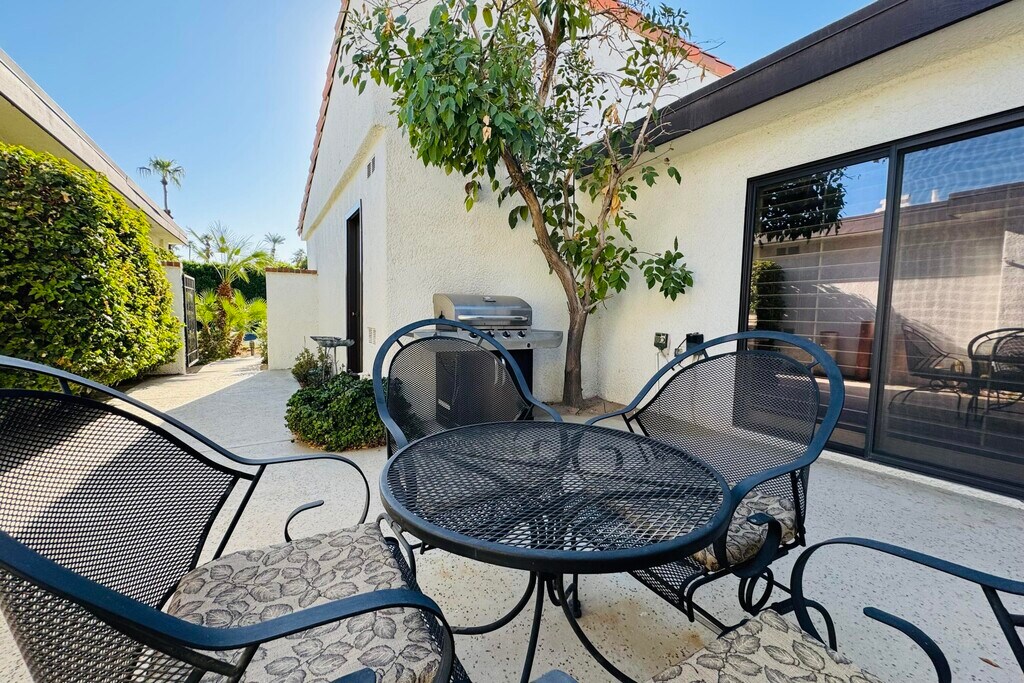 Welcome to Rancho Las Palmas,a gated community in one of Rancho Mirage's most desirable locations,offering the perfect blend of resort-style living and everyday convenience. Ideally situated just moments from The Riverfeaturing popular restaurants,boutique shopping,and a movie theaterand adjacent to the Omni Rancho Las Palmas Resort & Spa,where guests can enjoy world-class accommodations nearby. This turnkey furnished,two-bedroom retreat boasts an open floor plan with a bright and airy living/dining area,a private courtyard perfect for morning coffee,and an open patio showcasing serene lake and mountain views. Two sliding glass doors provide seamless access to the back patio,creating an effortless indoor-outdoor flowideal for relaxing or entertaining. Residents enjoy access to multiple community pools and spas,perfect for soaking up the sun and enjoying the desert lifestyle. Available for the 2025/2026 season,this home offers a peaceful desert escape in a secure,amenity-rich community in the heart of Rancho Mirage.