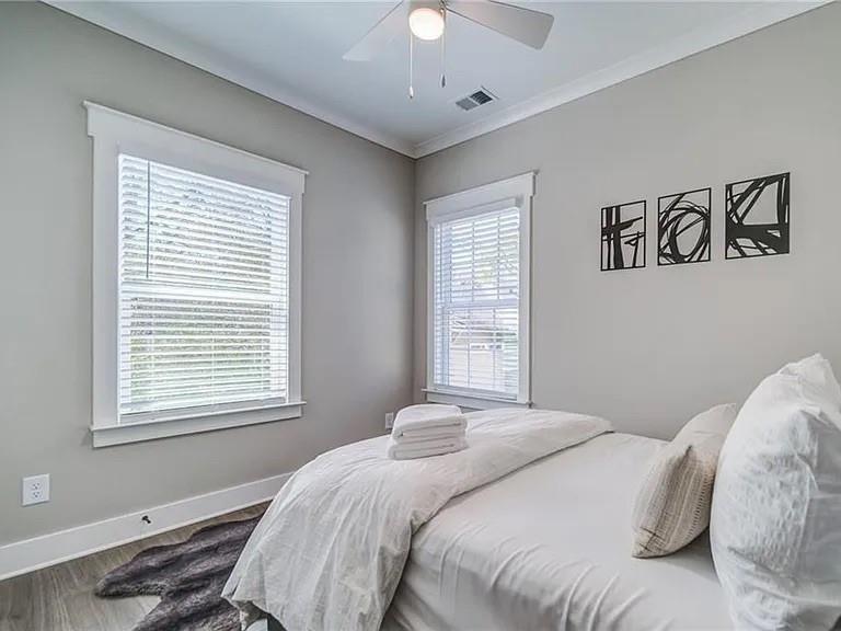 This beautifully designed *tiny house* is a brand-new,fully furnished two-story gem that’s move-in ready! Offering 2 bedrooms and 1.5 bathrooms,this thoughtfully crafted home features a modern kitchen equipped with brand-new appliances,sleek Quartz countertops,and everything you need for cooking,hosting,or enjoying a cozy meal at home. Inside,the home showcases 7-inch hardwood floors throughout,complemented by elegant oak stair treads. The bathrooms are styled with ceramic tile and cultured marble,adding a touch of luxury to this compact space. The meticulous attention to detail provides the sophistication of Buckhead living,all within the cozy setting of Bankhead. Situated on a quiet street with mature trees and friendly neighbors,this tiny house offers peaceful living in a prime location,just minutes from the vibrant and rapidly growing Westside area.