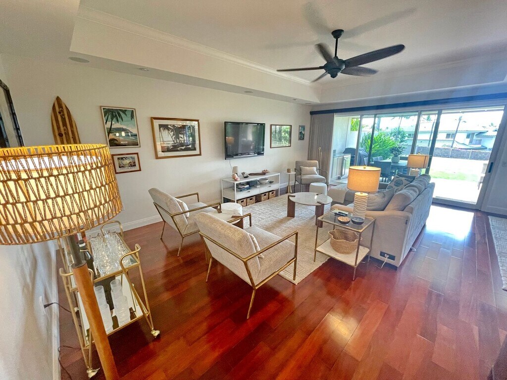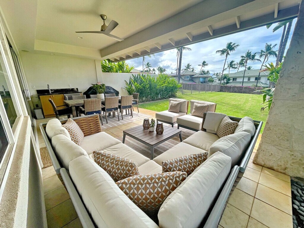 This spacious 3 bedroom, 2.5 bathroom Kai Malu luxury townhome located in a gated community is beautifully renovated and exquisitely furnished. Kainehe means "Whispering Sea" in Hawaiian, and that's exactly what you hear from the ocean view Master Bedroom as you sleep. Open concept design in the living, dining, and kitchen area, opens with pocket sliders to a large, covered lanai and private fenced backyard with coconut palms and a grassy lawn. Gorgeous Brazilian curupay hardwood flooring in the main living/dining area and 1st floor bedroom create comfort. Generous cabinet/counter space, a Sub-Zero refrigerator, GE profile stainless steel appliances and a Saeco super automatic espresso maker in the chef’s kitchen; just steps to comfortable indoor or outdoor dining. Central air conditioning and ceiling fans throughout will keep you cool and comfortable no matter the outside conditions. Freshly painted interiors in 2025. Brand new furniture and furnishings added throughout the home in 2025. The upstairs Master suite features a Juliette balcony, to enjoy partial ocean and sunset views, and the en-suite bathroom has a large jacuzzi tub with a separate shower room. The upstairs guest bedroom features a bay seat window. Full size stacked washer and dryer located upstairs. Developer upgrades include an outdoor wet bar and stainless-steel BBQ. Ample closet space and a 2-car garage provide plenty of storage. The owners have a small car that will be stored in part of the garage. There will be plenty of space for another car to be parked in the garage and additional parking in the driveway. Tenants will receive extra financial benefit from the 24-panel PV system which can provide low electricity bills through a grandfathered net-metering program. Included utilities are high speed internet, water/sewer, standard trash removal, and landscaping included in the rent. Tenant(s) responsible for electricity, phone, cable TV, and propane (for outdoor grill) and are required to obtain and maintain renter's insurance. Available as early as 4/1/26 through 11/30/26 for a maximum of an 8 month term. Some flexibility on the start and end date, but ideally looking for tenants to fulfill the entire 8 month term. $6500 plus GET ($306.28) = $6806.28 a month. Kai Malu’s pool pavilion has a 75’ infinity pool, jetted spa, sauna, steam room, fitness center, full kitchen prep area and generous seating for dining or lounging to relax and enjoy the unobstructed panoramic ocean views, from the West Maui Mountains to Kaho‘olawe. Kai Malu is a gated community located just a short drive to all Wailea resort amenities from Championship golf courses, Maui’s pristine beaches, to a great selection of shopping and dining choices. No pets please. Live the dream in paradise.