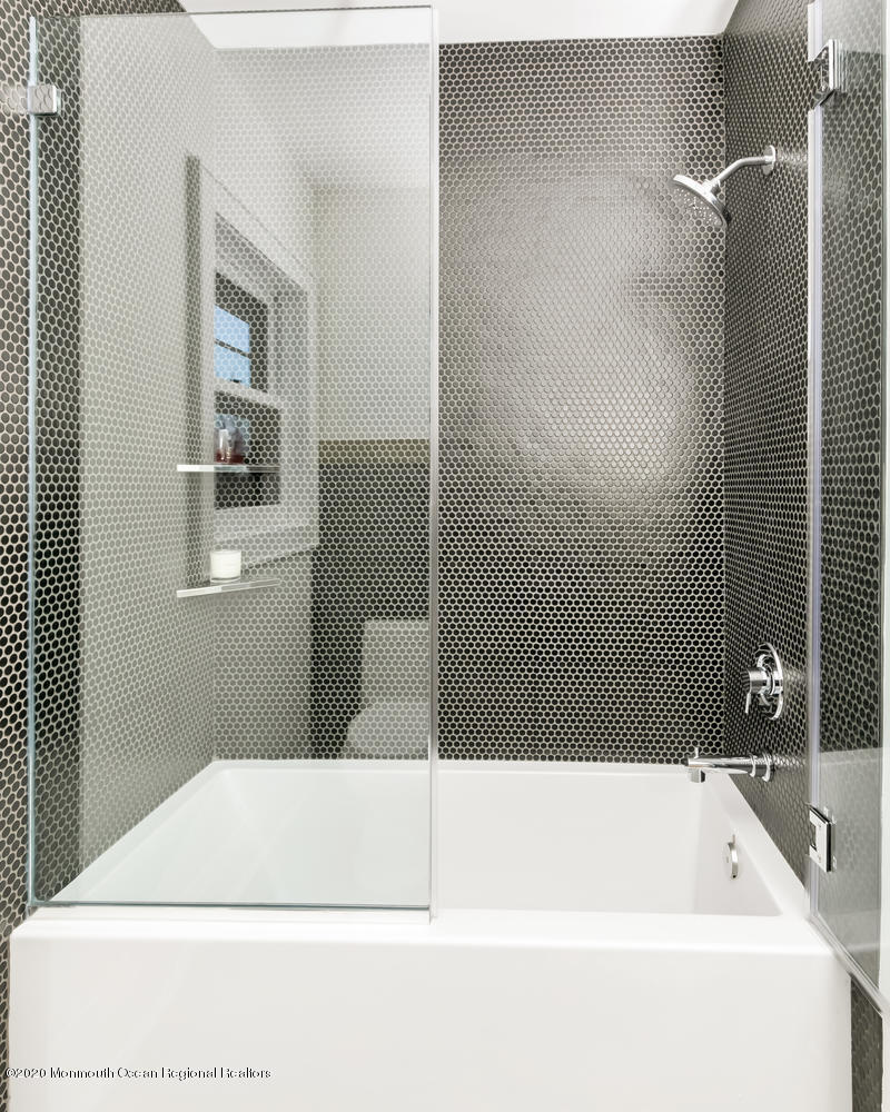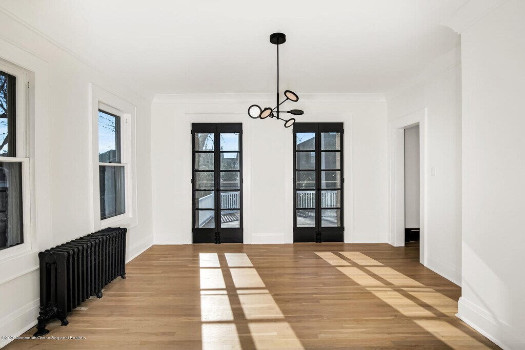 STEPS TO THE BEACH! Fabulous RENTAL in one of Rumson's hottest neighborhoods. Beautifully updated w/ a modern open floor plan & NY-chic finishes. Handsome covered front porch,high ceilings,custom millwork & hardwood flooring throughout. Gorgeous updated kitchen w/ white cabinetry,quartz countertops,oversized island w/ seating & high end appliances opens to sun drenched family room w/ handsome fireplace. BRAND NEW BATHS remodeled to perfection w/ designer selections & custom vanities. Generous sized BRs w/ great closet space plus finished 3rd floor w/ storage area. Gorgeous lighting,new doors and hardware & new AC. Tenant has use of Right Garage. Rental for main house only (not guest house). MINUTES TO NY FERRY. Good credit a must,no smokers.