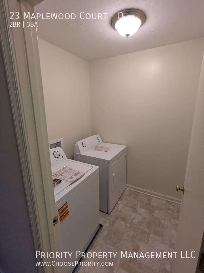 23 D Maplewood Court, Harrisonburg Newly updated 2 bedroom, 2.5 bath apartment in a great Harrisonburg location! -- Large living room with new flooring! -- New kitchen cabinets, countertops, and appliances! -- New laundry room! -- Large master bedroom with full bath -- Ample storage throughout! -- Off-street parking! 2 cars only -- Patio Firm NO smoking in units. Pets allowed - 2 pets up to 60lbs total combined weight. $75 monthly pet fee and an additional $300 pet deposit. Utilities (electricity, water, sewage) are not included. If you are visiting a 3rd party listing site please visit to ensure this property is still available. All Priority Property Management residents are enrolled in the Resident Benefits Package (RBP) for $20.95/month which includes renters insurance, HVAC air filter delivery (for applicable properties) and much more! More details upon application. Description?*