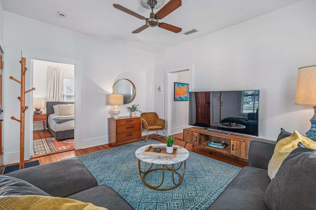 The advertised rate of $2,614/month is the lowest available price, based on a 1 month(s) stay with a move-in date of April 13, 2026. Rates vary depending on the duration of stay, season, and other parameters. For exact pricing and additional pricing components, please visit our website and enter your desired move-in and move-out dates. The rate is applicable when billed upfront; it can be higher if billed in multiple payments. Feel at home in this delightful home in the Uptown neighborhood, perfect for families and small groups. This home features a living room with a large, cozy couch and a large smart TV, a dining room with seating for 6, and a fully equipped kitchen with a drip coffee maker, fridge, stove, oven, microwave, pots/pans set, plates, and bowls. There is also a spacious laundry area with a washer and dryer, and a full bathroom with a walk-in shower. The private outdoor space includes a dining table and grill. This home is pet friendly for 1 dog under 50 lbs, with a $150 nonrefundable pet fee. Located less than a 15-minute walk to downtown and a 10-minute drive to Vilano Beach, this home is just a few minutes' walk to many local favorites including Sunday Gathering Table, Raintree, and Juniper. The trolley stop is down the street at the Mission Nombre de Dios. St. Augustine is the nation’s most historic city and also holds the distinction of being one of the most charming. Experience flavorful dining, art, and culture with an abundance of entertainment right on your doorstep. The home is located right in the heart of Uptown St. Augustine, just a few minutes’ walk from the main street known for boutique shops, art galleries, antique stores, as well as local eateries from pizza to fine dining. Those who appreciate architecture from the 1800s to the 1920s will want to walk through a number of small neighborhoods listed on the National Register of Historic Places. Once in the city center, many of St. Augustine's shops, restaurants, art galleries, and attractions sit within the historic city center, making it easy to get around on foot. Quiet hours are between 10 pm and 8 am per St. Johns County ordinance and are enforced. No vaping or smoking is allowed whatsoever on the property, including the front porch. If evidence of smoking is found, you will be subject to an additional cleaning fee. No parties are allowed. If you have more guests on the premises than you have notated in your reservation, we reserve the right to charge an additional fee. [SI]