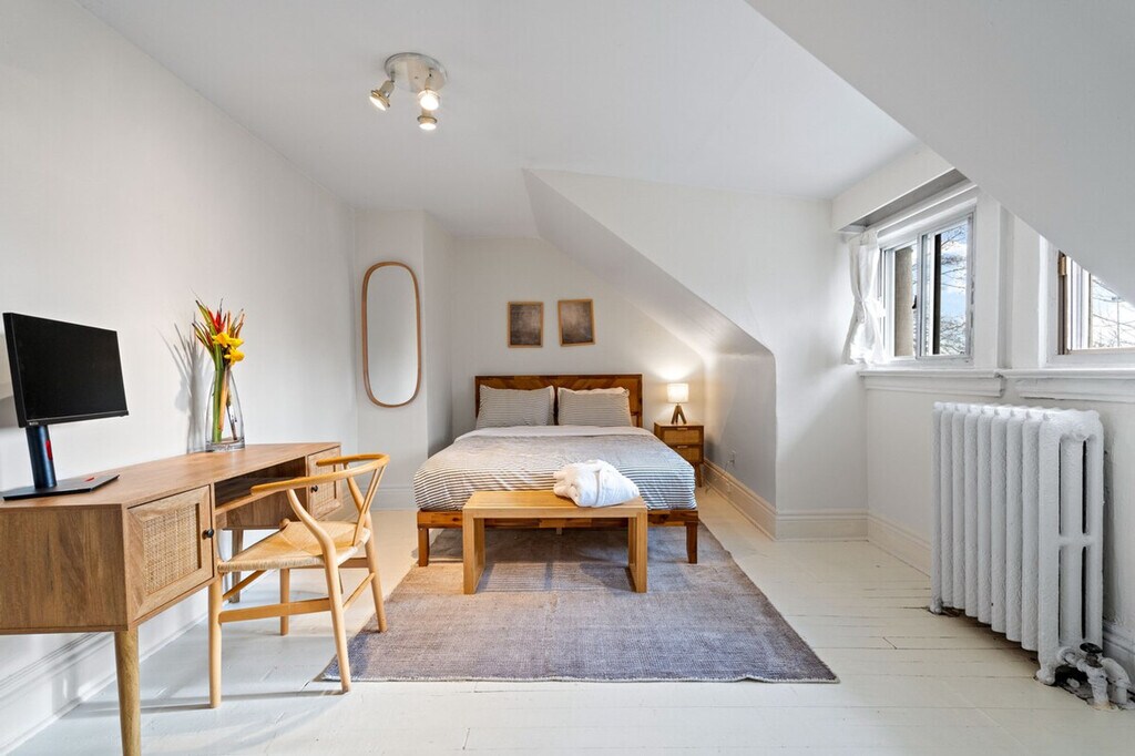 The advertised rate of C$8,133/month is the lowest available price, based on a 1 month(s) stay with a move-in date of April 1, 2026. Rates vary depending on the duration of stay, season, and other parameters. For exact pricing and additional pricing components, please visit our website and enter your desired move-in and move-out dates. The rate is applicable when billed upfront; it can be higher if billed in multiple payments. Feel at home in this bright 3-bedroom home in Downtown Toronto directly overlooking High Park. Located on the first and second floors, this home is perfect for families, groups, or professionals. This modern and stylish home features a living room with an oversized comfortable sofa, throw blanket, and a 65” smart TV. The fully equipped kitchen includes complimentary coffee and tea, cooking essentials, a microwave, stove, oven, refrigerator/freezer, kettle, toaster, glasses, silverware, and pots and pans. The bathroom is stocked with shampoo, conditioner, body wash, hand soap, and towels. Paid parking is available on the street. Enjoy being steps to the lake and vibrant dining in Roncesvalles, Bloor West Village and The Junction. This home is 5 minutes to BMO Field, 10 minutes to Scotiabank Arena, Rogers Centre, and CN Tower, offering city access with a peaceful, green setting. Quiet outdoor hours are from 10:00 PM to 8:00 AM, and no outdoor music is allowed after 10:00 PM. Noise complaints may result in a non-refundable cancellation of your booking and a fine up to $1000. No parties are allowed as it is a family neighborhood. Smoking is not allowed inside the house, and violations of this policy will result in a $1000 fine. There is a noise monitoring device installed in the unit that tracks volume decibels, but does not record audio. There is one camera positioned at the front entrance of the exterior that records image and sound 24/7. Bedroom 1 includes a work station. Toilet paper, garbage bags and basic toiletries will be provided at the beginning of stays of one week or longer. It will then be the guest's responsibility to provide these for the remainder of their stay. Registration Number: STR-2603-FPSPPQ [SI]
