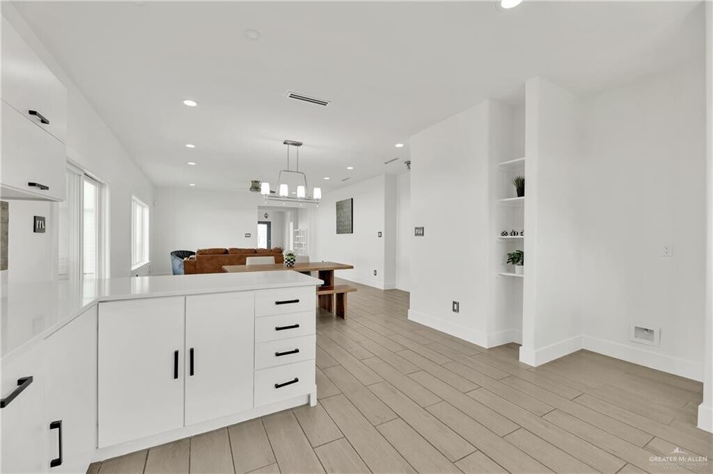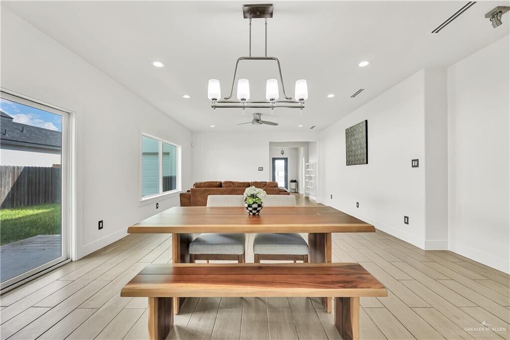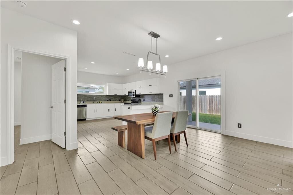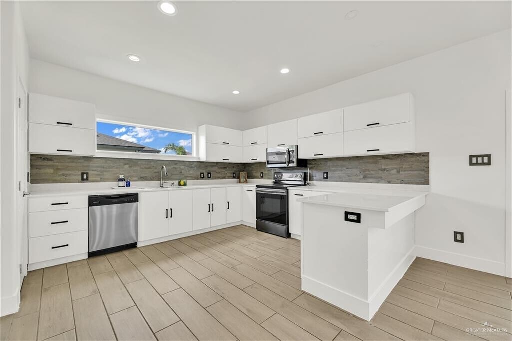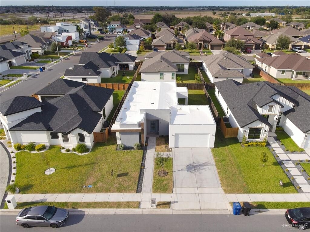 Sleek modern home located in the gorgeous La Floresta Subdivision!!! This custom-designed home is overflowing with upgrades and exudes elegance from every angle. Airy open-concept floor plan,state-of-the-art light fixtures,and low-maintenance tile flooring throughout. Satisfy even the most demanding chef with the gourmet kitchen,boasting custom cabinetry,quartz countertops,and an extra large breakfast bar. With 3 generously sized bedrooms and 2.5 baths,there will be plenty of space for the entire family. Primary retreat features an extra-large closet and a luxurious redesigned spa bathroom with double vanities and a rain shower. Enjoy backyard barbecues on the covered patio,overlooking the private backyard. The garage features a drive-through design with front and rear garage doors for seamless access. Excellent North McAllen location,close to shopping and dining,with easy access to premier medical complexes and the Expressway!