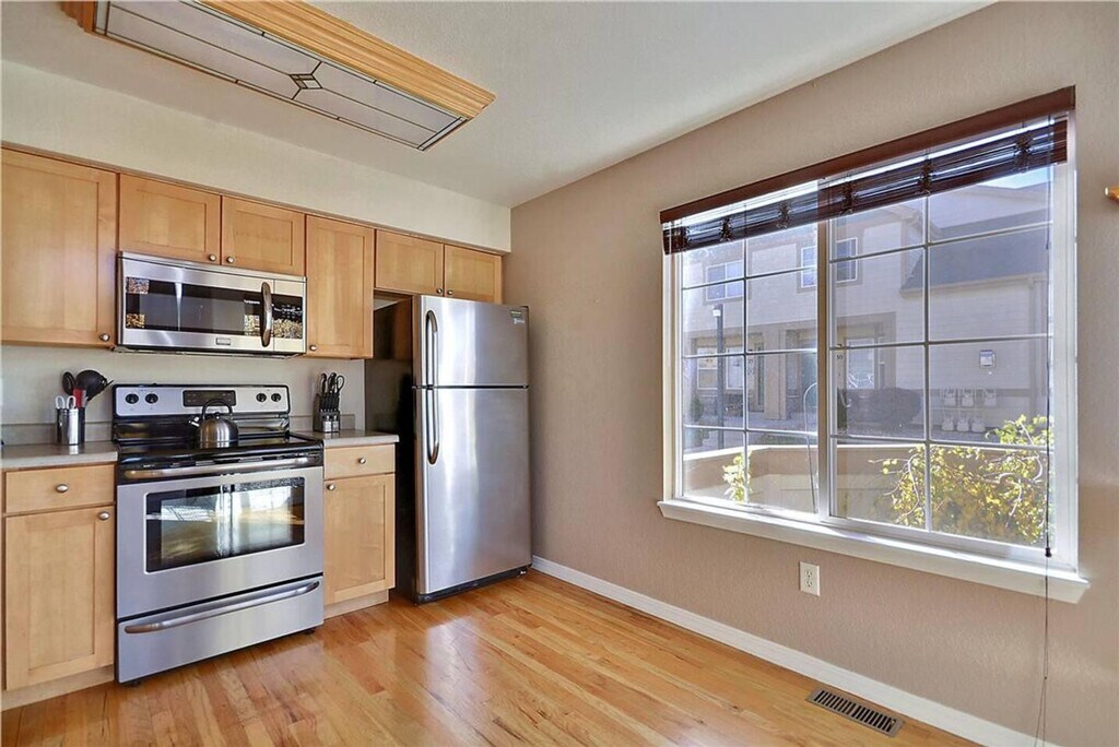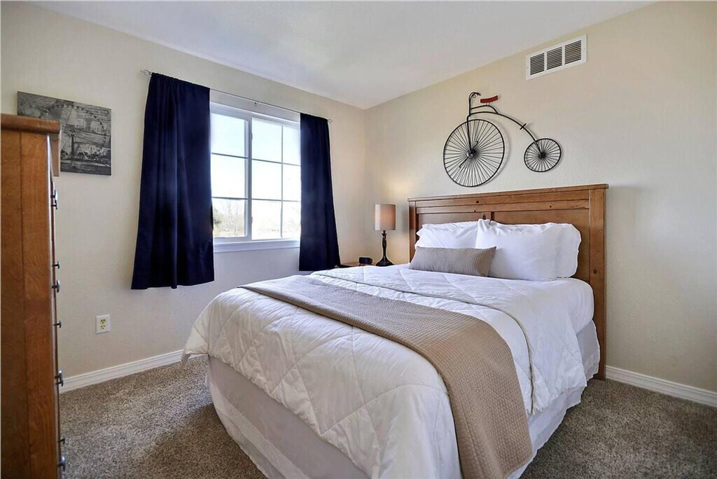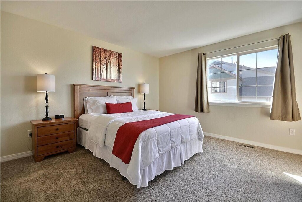 This executive quality two-story townhome is adjacent to a greenbelt and across the street from Fort Collins' popular Twin Silo Park. Featuring large windows that fill the space with light and vaulted ceilings that create a spacious feel, this open floor plan home is perfect for feeling at home. Enjoy the convenience of a patio for outdoor entertaining, complete with a table and two chairs, and a detached 1-car garage. The living room is equipped with a large flat-screen TV and a gas fireplace, setting a comfortable and inviting atmosphere. Central AC ensures your comfort in all seasons. The full kitchen is well equipped, including dish service for 10, making it ideal for home-cooked meals. Additionally, the home features a full-sized washer and dryer, adding to the convenience. Located in the Sage Creek Townhome Community at Ziegler and Kechter, this home is ideally positioned. Twin Silo Park is just across the street, and the property is close to several schools including Bacon Elementary, Preston and Kinard Middle, and Fossil Ridge High School. It's also near UC Health Harmony Campus and Cancer Center, Banner Hospital, and major employers like AMD, Intel, Broadcom, and HP. Front Range Village shopping center is nearby, and it's only a 5-minute drive to I-25. This property is professionally managed to meet corporate housing standards, making it perfect for business travel. It is available for month-to-month rentals, accommodating varying stay lengths. Reservations must start within 10 days of the available date to be approved. If a later start date is needed, efforts will be made to accommodate, if possible. [SI]