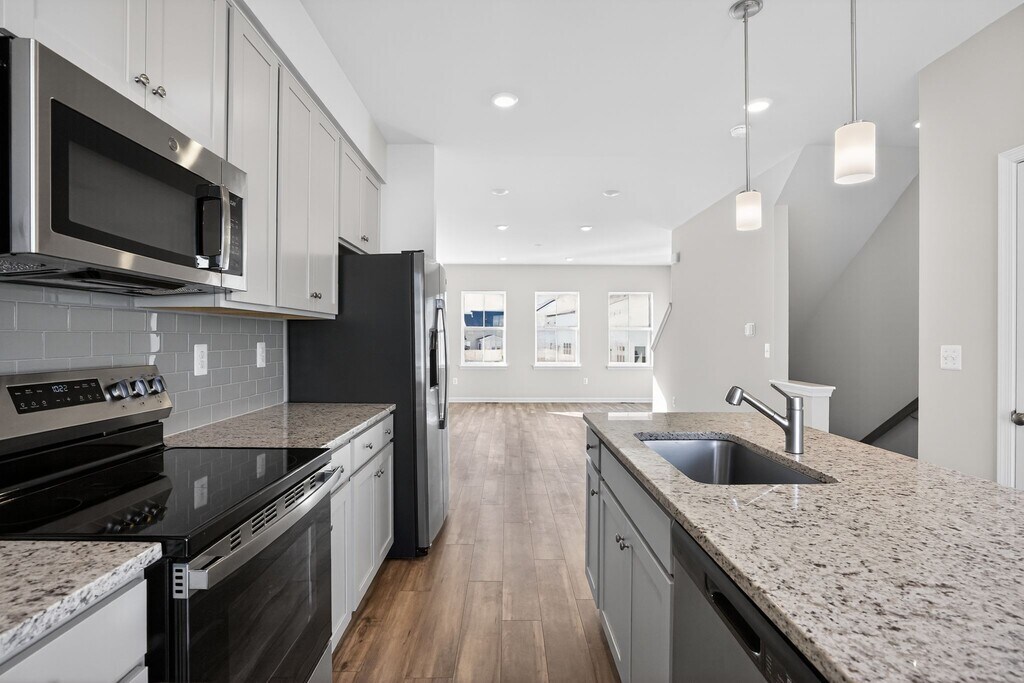 Be the first to live in this brand new 2025 construction Quincy model located in the desirable Shenandoah Springs community. This never-lived-in home offers modern finishes, thoughtful upgrades, and a functional layout designed for comfortable long-term living. The home features three fully finished levels with a rear-entry garage. The entry level includes a private bedroom with a full bathroom, ideal for guests, multi-generational living, or anyone seeking a stair-optional setup. The main level is bright and open, with the kitchen overlooking the dining and living areas—perfect for everyday living and entertaining. The kitchen is appointed with upgraded cabinetry, granite countertops, tile backsplash, stainless steel appliances, pendant lighting, and luxury vinyl plank flooring throughout. A convenient half bath is also located on this level. Just off the main living space, enjoy a private deck ideal for relaxing, grilling, or hosting friends. The top level features a spacious primary suite with a private bathroom and walk-in closet, along with an additional well-sized bedroom, full hallway bathroom, and upper-level laundry for added convenience. Shenandoah Springs is a growing community offering walking trails, a sport court, tot lot, and a community swimming pool coming soon. The home is situated in a prime commuter-friendly location with quick access to Route 9, Route 340, Shenandoah University, Charles Town Race Track, and nearby shopping and dining. This home provides the feel and efficiency of new construction with modern design throughout—an excellent option for tenants seeking a high-quality long-term rental in a well-connected community. Pets on case-by-case with pet deposit and monthly pet rent.