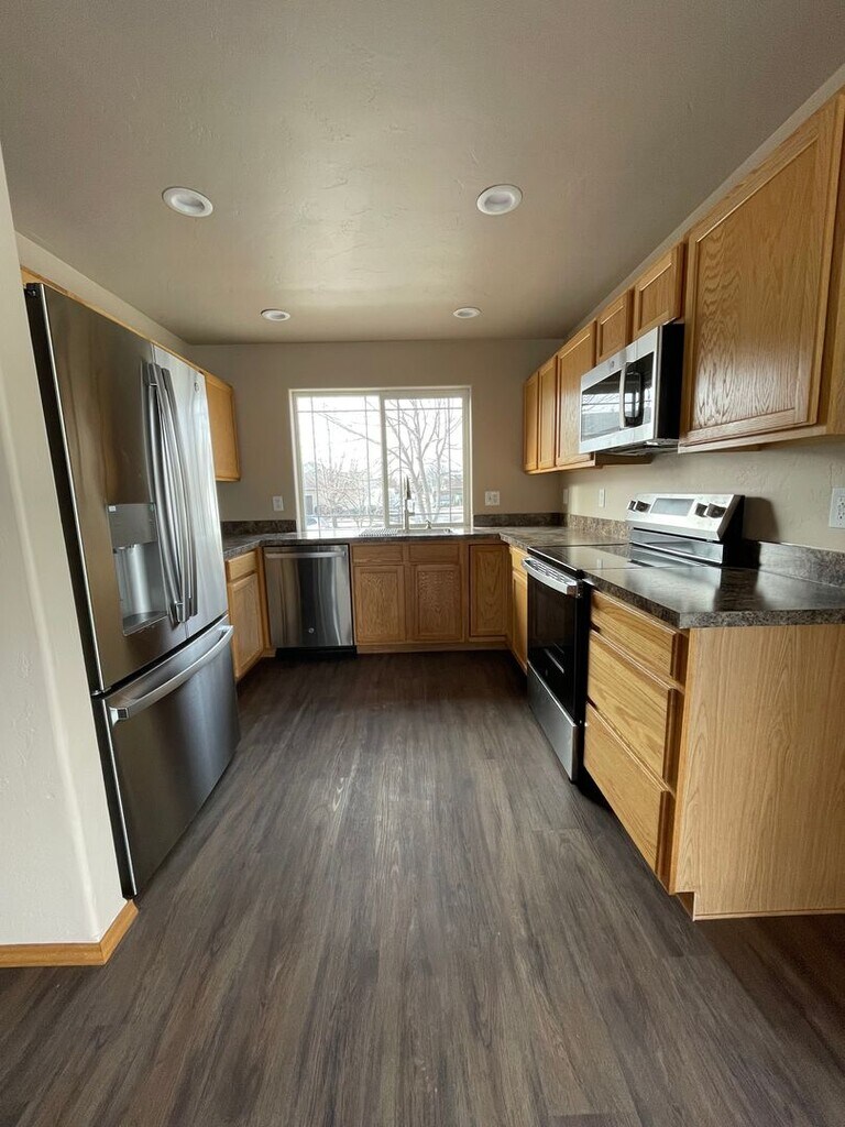 This beautifully updated three-bedroom, two-bathroom townhome is ideally situated in south Kalispell. The main floor boasts a master suite complete with a walk-in closet and an en-suite bathroom, while the upper level features two additional bedrooms that share a convenient Jack and Jill bathroom. Freshly painted throughout, the unit includes a kitchen equipped with new appliances. Additional highlights of the property are a fully fenced backyard, a one-car garage with openers, ample storage, and air conditioning for enhanced comfort. The laundry room is also fitted with washer and dryer hook-ups. A well-behaved pet, either a dog or a cat, is allowed with an extra deposit of $500 and a monthly pet fee of $50. Tenants will be responsible for all utilities, including gas, electricity, trash, lawn care, and snow and ice removal, along with a flat monthly charge of $65 for water and sewer services. Contact Lindsay R. to schedule a showing