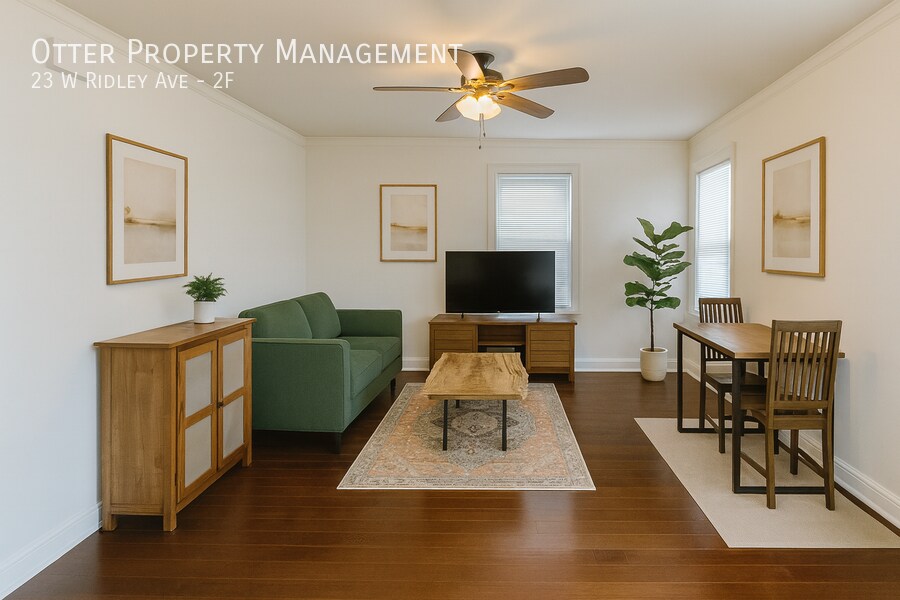 Welcome to 23 W Ridley Avenue – Unit 2F, Ridley Park, PA 19078, a lovely and sun-drenched 1-bedroom, 1-bathroom apartment located in one of Ridley Park’s most desirable neighborhoods. This inviting home features beautiful hardwood floors throughout, creating a warm and welcoming atmosphere. Enjoy ceiling fans in both the living room and bedroom for added comfort. Step outside to your porch/deck and backyard, offering a peaceful outdoor space perfect for relaxing or enjoying fresh air. A coin-operated washer and dryer is conveniently located in the entry foyer of the home, making laundry day incredibly easy. ? Key Features: 1 Bedroom / 1 Bathroom Hardwood floors throughout Ceiling fans in the living room and bedroom Porch/deck and backyard for outdoor enjoyment Coin-op washer/dryer accessible in the entry foyer Bright, charming, and well-maintained interior Located in a desirable Ridley Park neighborhood Utilities: Water and gas (heat) included in rent Tenant responsible for Electric and Gas Move-In Costs: First month’s rent + last month’s rent + security deposit due before move-in Don’t miss your chance to make this cozy Ridley Park apartment your new home — schedule your tour today! Backyard Driveway Parking Electric Tenants Pay Provider Directly For Usage Gas Tenants Pay Provider Directly For Usage Gas (Heat) Owner Pays Gas (Heat) Service Porch/Deck Storage Space Water Owner Pays Water Service