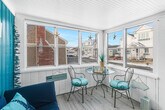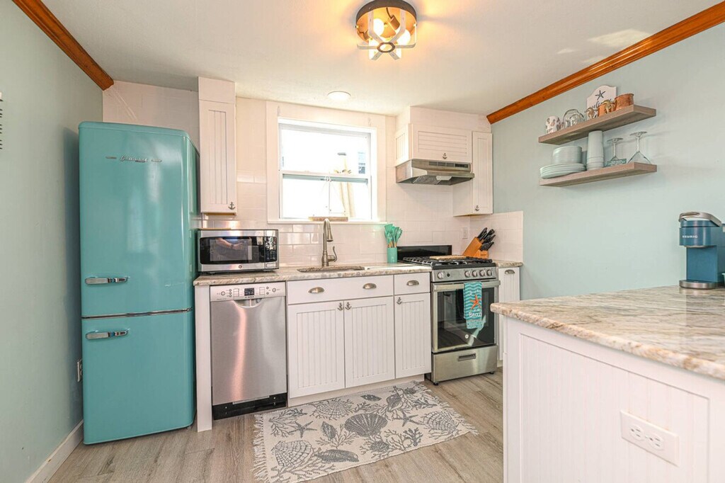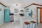 Welcome to Blue Chill Cottage, your dream vacation home on the scenic seacoast! This enchanting 750 sq. ft. haven offers a refreshing coastal palette and a flood of natural light that instantly lifts your spirits. The single-story layout ensures easy living and accessibility, perfect for both young families and retirees alike. The heart of this home is the open-concept living area, where the kitchen seamlessly blends with the living room. Prepare gourmet meals in the stunning kitchen, complete with sleek white cabinetry, high-end appliances, and a charming retro-style refrigerator. The adjacent living space is perfect for entertaining, with comfortable seating and beachy decor that sets the mood for relaxation. Both bedrooms are thoughtfully designed to provide serene retreats after long days at the beach. The primary bedroom, a generous 100 sq. ft., boasts soothing blue hues and ample natural light, creating a peaceful oasis. The second bedroom, with its nautical theme and cozy twin beds, is ideal for guests or children. The bathroom is a vision of coastal elegance, featuring a clean, crisp design with modern fixtures and subtle beach-inspired accents. Energy-efficient ceiling fans and plenty of windows ensure the space stays cool and breezy, embodying the laid-back beach lifestyle. Grill, dine, or just enjoy summer stars from your private back deck, which has a large gas grill and dining table that comfortably seats six. For family-friendly homes, a luxury Pack-n-Play or other children's furnishings are available for an additional charge as availability permits. Located in the heart of Hampton, this property puts you just moments away from pristine beaches, local attractions, and the vibrant community. Hampton Beach is the perfect place for families and friends to create enduring memories, offering a variety of amusements. The waves are tame enough for toddlers yet energetic enough for teens to boogie board. After a fun-filled beach day, enjoy Hampton Beach nightlife with fireworks, free concerts, and headline acts. The Boardwalk is lined with amusements for a classic beach vacation, including fresh seafood and mini-golf. Smoking is strictly prohibited, and guests will be fined and immediately evicted for smoking or vaping in the home or on the property. No parties, events, performing artists, or bands are allowed at any time, which are cause for eviction with no refund. If any damage impacts our ability to offer the home for future guests, you will be held liable. Blue Chill offers two tandem spots in the driveway along the left side of the house. Regrettably, Blue Chill does not host furry family members, as it is strictly no pets. Quiet hours are between 10 PM and 8 AM, and guests are expected to respect the neighbors' right to peacefully enjoy their homes. [SI]