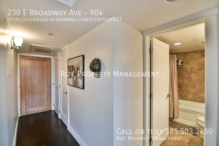 Get settled into your new home with major savings this season. Claim your first month free while it lasts! Come experience Broadway Towers and the sleek, modern living experience of Downtown Salt Lake City. From the moment you enter the lobby, you will enjoy the updated feel of this phenomenal property. Journey farther to the entrance of this condo and you will notice the dark wood floors under foot and the updated feel that carries through this wonderful home. Continue onto the kitchen with stainless steel appliances, ample granite countertop space, and solid wood cabinetry. Lots of storage and room for all your cooking needs. The open floor plan makes this space feel comfortable and airy. The fantastic private balcony has a great view of the mountains. Rather head downtown? This location is walking distance to plenty of Salt Lake’s finest restaurants and entertainment. Schedule your tour today! Condo includes amenities like central AC, electric baseboard heat, on-site fitness room, sauna, hot tub, and garage parking. Easy to tour, call This property allows cats only, with a 1 pet maximum. Resident is responsible for renters insurance and all utilities including: -$60 per month for Water/Sewer/Trash. -$11 per month utility billing fee -Electric will be billed based on usage Move in fees consist of: $350 non-refundable cleaning fee $275 non-refundable lease initiation fee All information contained in this advertisement is deemed reliable but is not guaranteed. Applicants are solely responsible for verifying the accuracy and completeness of all details provided.