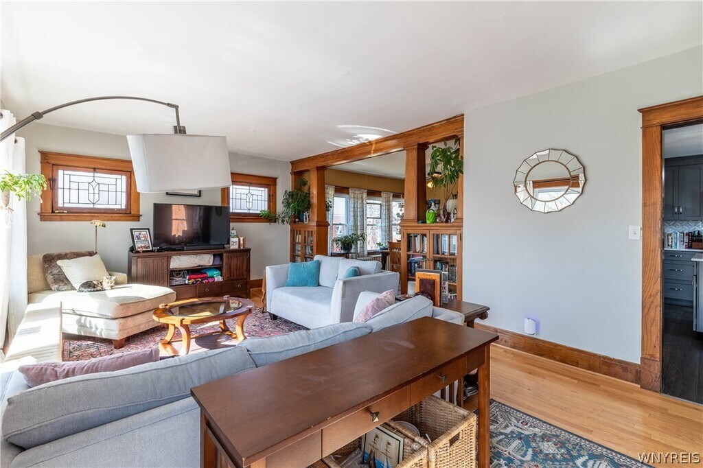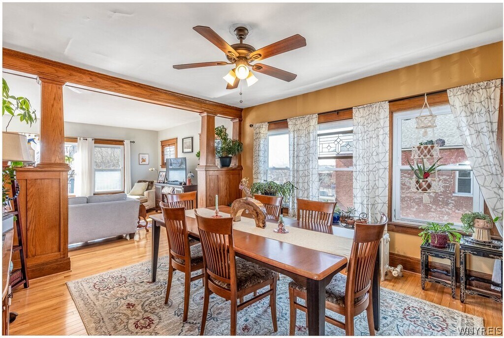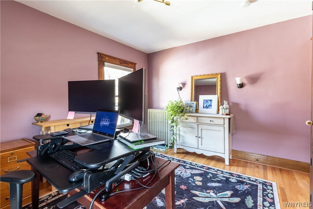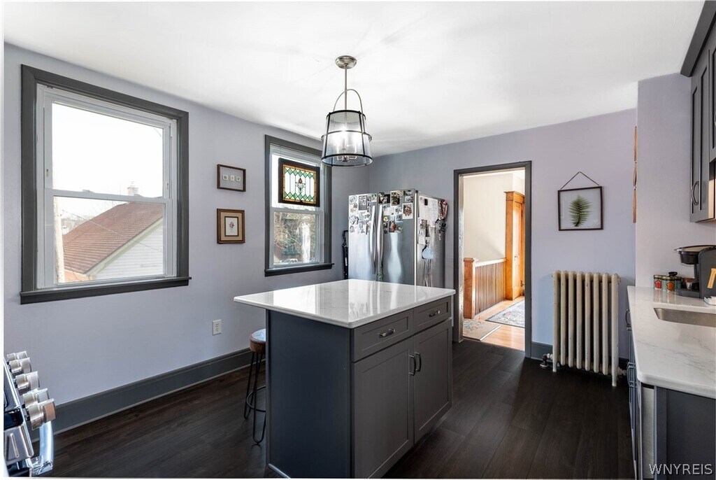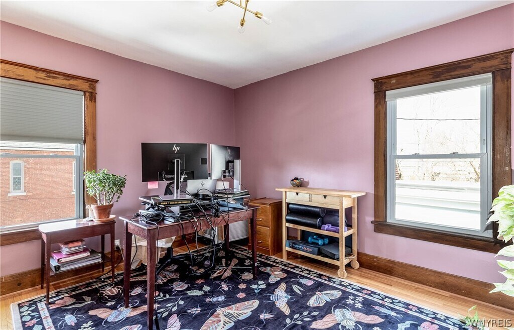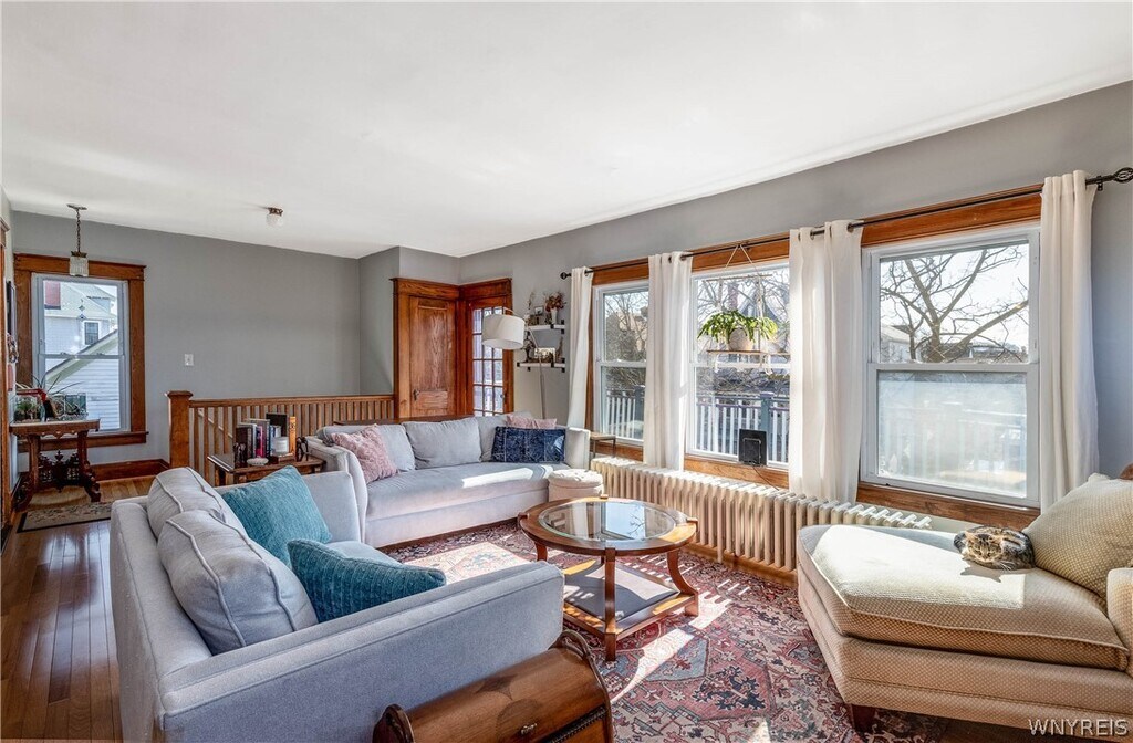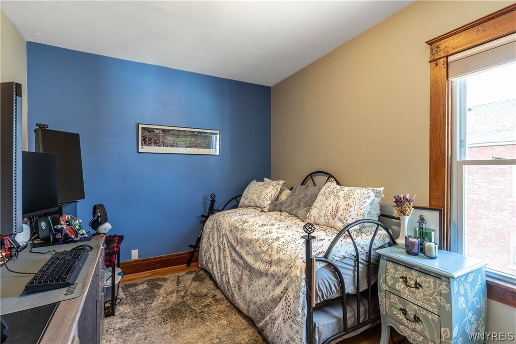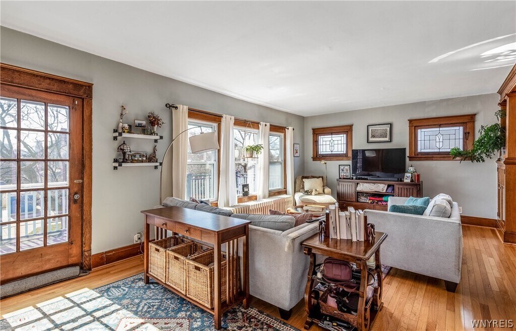 Welcome to this bright and spacious upper apartment at 230 Pennsylvania. Original hardwood floors,stained wood trim,and charming details like built-in bookshelves and a linen closet are found throughout. The updated kitchen features stainless steel appliances and granite countertops. A two-car garage is available for an additional $150/month. Laundry machines are provided in the basement on tenant-paid utilities. Located within walking distance of Kleinhans Music Hall,D'Youville University,Allentown,and the retail corridor along the Lower West Side. The unit is available for move in on July 1st at the earliest. To Apply: Each household member 18 and older must submit a RentSpree application. Minimum qualifications are a 620 credit score and gross income of at least 3x monthly rent. First month's rent and security deposit are due at signing. Pet Policy: No dogs. Up to two cats permitted. No smoking.