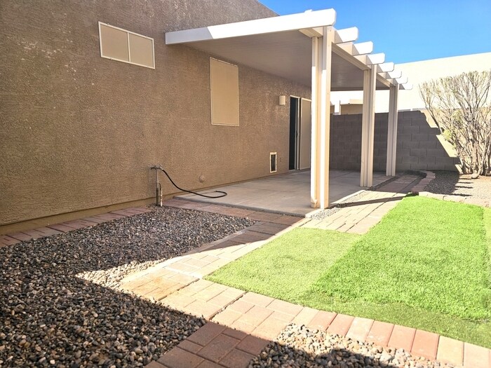 Great opportunity for a single level detached home in San Tan Valley! This 3 bedroom 2 bath home has tile in all of the high traffic areas and comes complete with Washer, Dryer and Fridge! Enjoy a great night of cooking using the Stainless Steel appliances and display your creation on the Granite Counter tops! The summer heat will be kept at bay with the assistance of Sun Screens and Ceiling fans for energy efficiency. Ease of maintenance? Absolutely! Desert landscaping in the rear with artificial grass for decoration. Sit outside on the cool winter nights and enjoy the covered patio or sit out front and enjoy the view of the mountains. Hurry on this one! This property allows self guided viewing without an appointment. Contact for details.