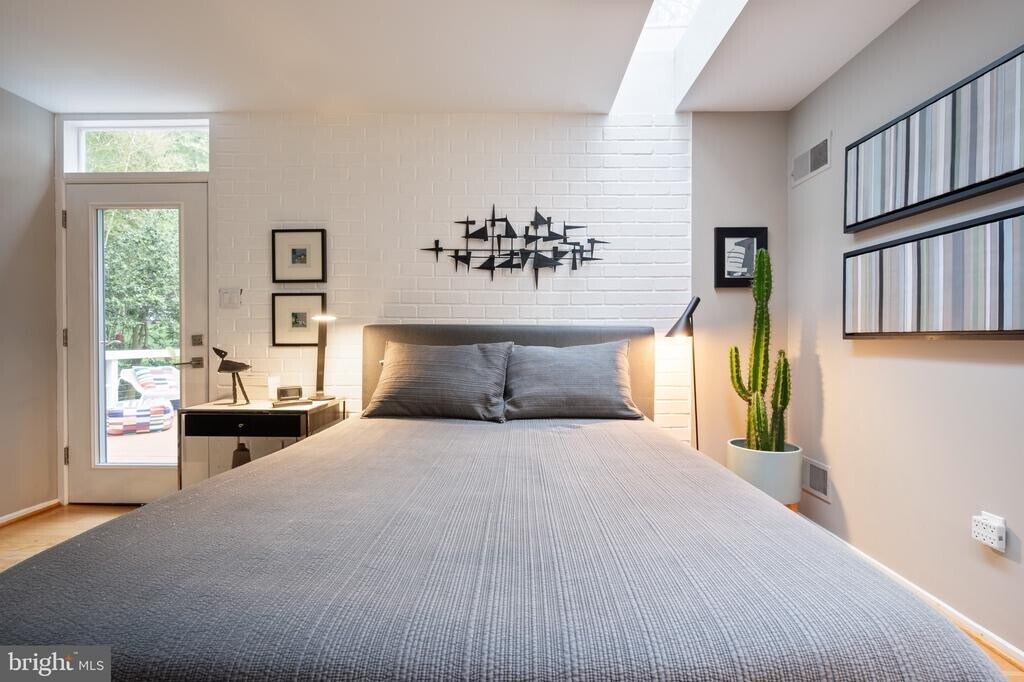This Mid-Century Modern home, located in the highly desirable Hollin Hills neighborhood, offers the perfect blend of style and functionality with its one-level living design by the renowned architect Charles Goodman. Remodeled and expanded to add a huge primary bedroom with skylights, built in dresser and large walk-in closet as well as private access to wonderful deck. Four total bedrooms and two remodeled full bathrooms. Spacious living area with floor to ceiling windows, brick wood burning fireplace flows into dining room and remodeled open kitchen. Outdoor spaces include wrap around deck with cable railing as well as patio in rear yard. Rent includes yard maintenance. The scenic neighborhood boasts 7 parks, trails, an active Civic Association with seasonal celebrations, delicious super society and a friendly, close-knit environment. A commuter's dream location minutes from GW Parkway and trails, DC & the Pentagon; and south to Fort Belvoir, or north to Andrews AFB & Tysons Corner via I-495. This special address is an idyllic sanctuary to call home!
