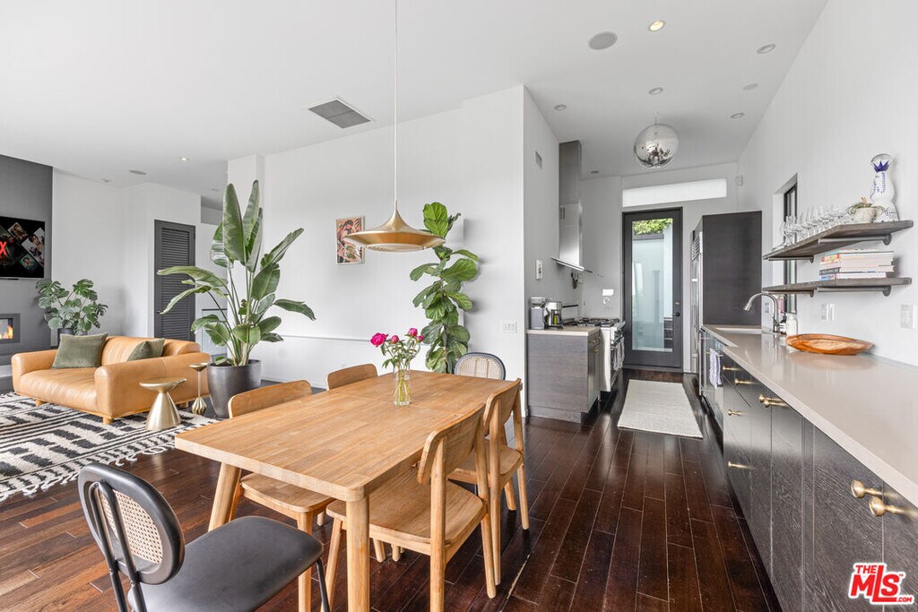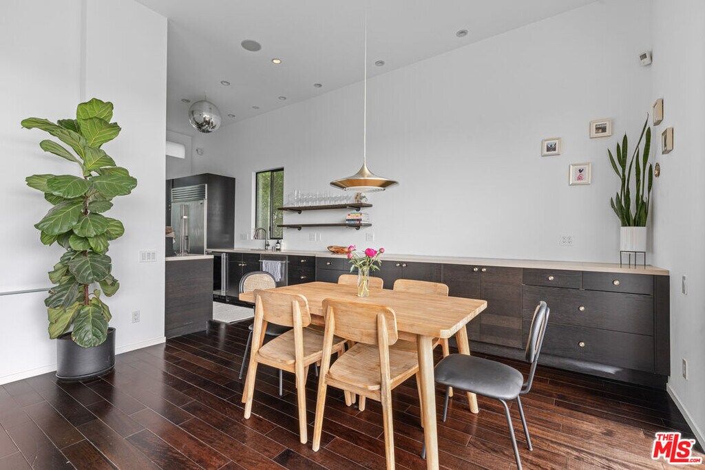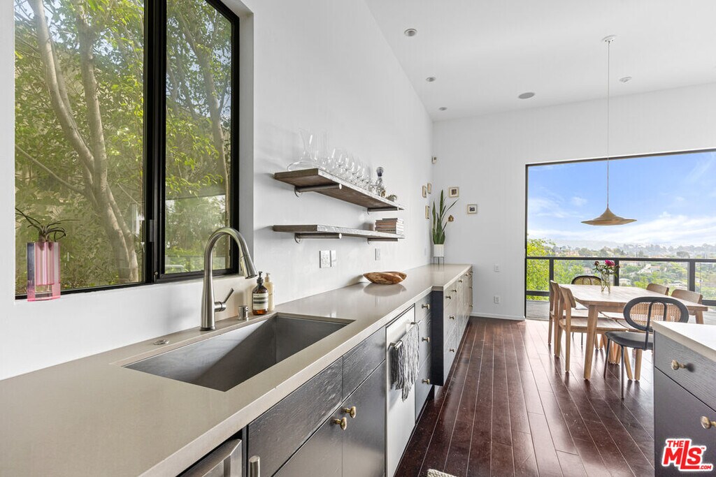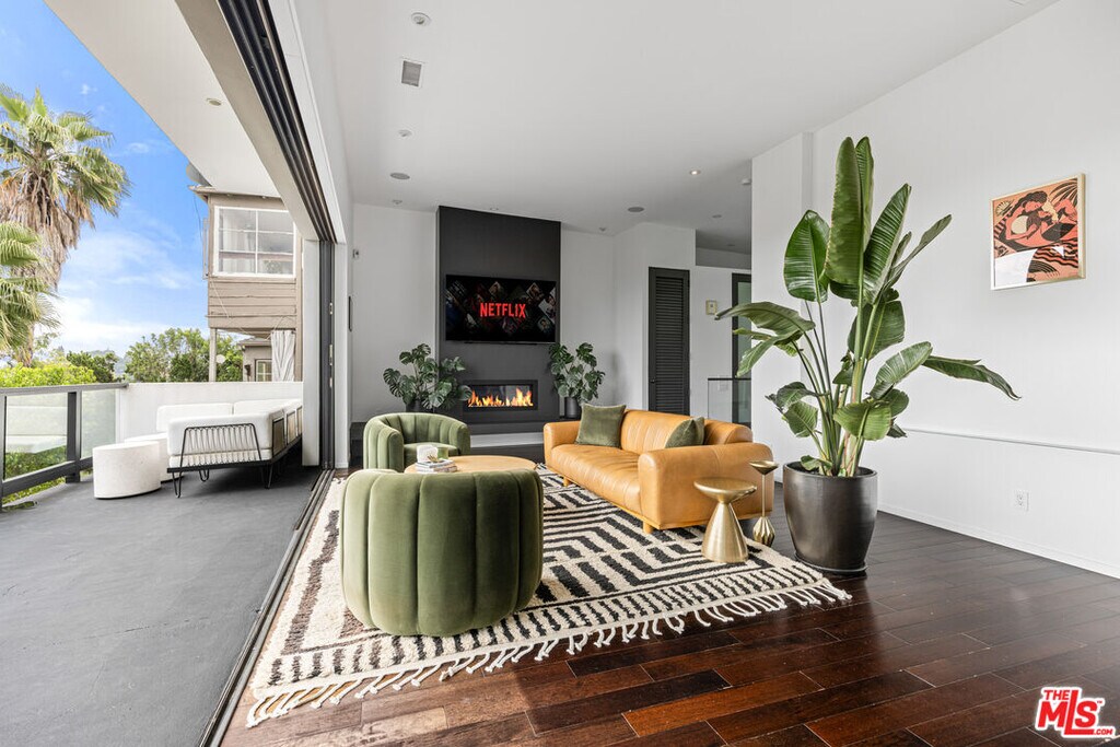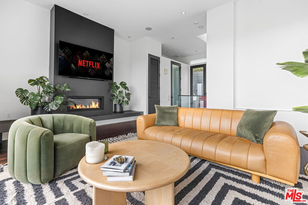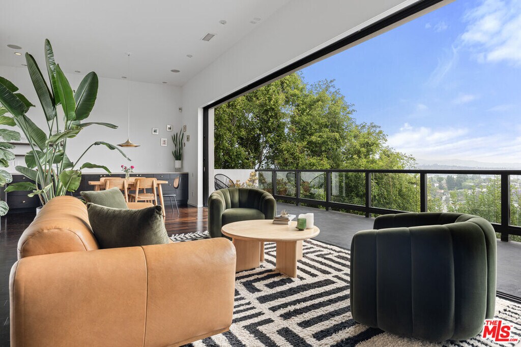 Set discreetly behind gates on a quiet, tree-lined street in Franklin Hills, this fully furnished tri-level architectural residence offers 2,719 square feet of intelligently curated interiors and nearly 5,000 square feet of lushly terraced grounds blurring the line between form, function, and serenity.Elevated atop the site, the top-floor living level unfolds beneath soaring 12-foot ceilings and a wall of disappearing Fleetwood sliders that frame unobstructed skyline and mountain views. A chef-caliber kitchen anchors the open-plan space, outfitted with a 60" Viking range, Sub-Zero refrigeration, wine storage, and an integrated appliance suite. Anchored by a linear gas fireplace, the living and dining areas flow seamlessly to a sky-lit deck ideal for sunset entertaining. A sculptural powder room completes the level.The middle floor features a luxurious primary suite with fireplace, custom built-ins and spa-quality bath with steam shower and soaking tub. A secondary ensuite bedroom, easily convertible as a home office, completes the floor.The lower level functions as an immersive retreat featuring a Dolby-enhanced media room with 120" laser projection and drop-down screen, a fully outfitted gym, a third ensuite bedroom, and bonus spaces including a wine cellar, laundry, and guest lounge with a queen-size pullout.Four distinct outdoor terraces cascade down the hillside, each offering curated moments of leisure and wellness: a built-in firepit lounge, hardwood cedar sauna, outdoor shower and cold plunge, soundproofed studio/office, sun deck, and a full alfresco kitchen. Every inch of the 4,826 sq ft lot is considered and intentional.Smart home infrastructure includes a closed-circuit surveillance system, whole-house audio, hardwired ethernet in every room, smart thermostats and lighting, doorbell camera, and keyless gate access. Additional features include a Tesla charger, owned solar panels, two-car garage, and water-feature entry.Offered fully furnished with curated pieces from CB2, Crate & Barrel, and West Elm, the home is stocked with natural fiber linens, Parachute towels, and a chef's kitchen.Located in a coveted pocket of Los Feliz with tight-knit community appeal including the Franklin Hills Residents Association, stairway walks, median garden, and twice-yearly block parties this residence offers privacy, prestige, and prime access to Silver Lake, Atwater, Griffith Park, and major freeways. Zoned for highly regarded public schools including Franklin Elementary. A quick 15-minute ride to Burbank airport makes this home a commuter's dream.A home of rare architectural clarity and elevated lifestyle crafted for those who value design, privacy and connection to community.Available unfurnished at $15,000/month.Renter pays for all utilities. MLS# 26741213