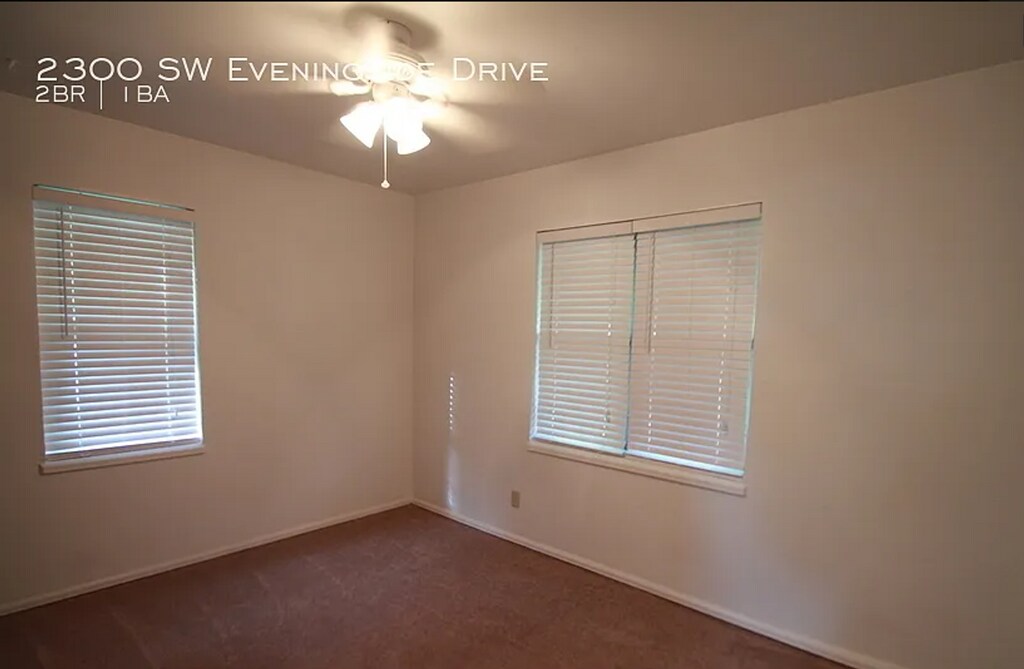 There is currently a 2 Bed 1 Bath Home for rent with 660 sq ft listed at 2300 SW Eveningside Dr. It is Available April 30, 2026.