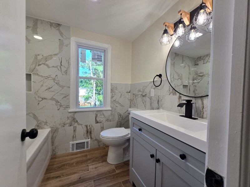 Property Id: 1757738 Stunning Fully Renovated 4 Bedroom, 3 Bath Home. Welcome to this gorgeous, move-in ready home that has been completely renovated with a modern touch and the addition of ceiling lighting throughout the house. First floor- A spacious modern kitchen with ample storage. New appliances including refrigerator, dishwasher, oven, and microwave. A bright living room and dining area, along with a beautifully designed bathroom. Upstairs- 4 comfortable bedrooms, including a Master suite with a private spacious full bathroom. One of the bedrooms features a large balcony, and an additional full bathroom completes the floor. Finished Half Basement- Perfect for extra living space, with a cozy carpeted area. New washer and dryer. New central AC system. An attached one-car garage. A private backyard with plenty of space and a deck. *Tenant responsible for utilities, lawn care, and snow removal.