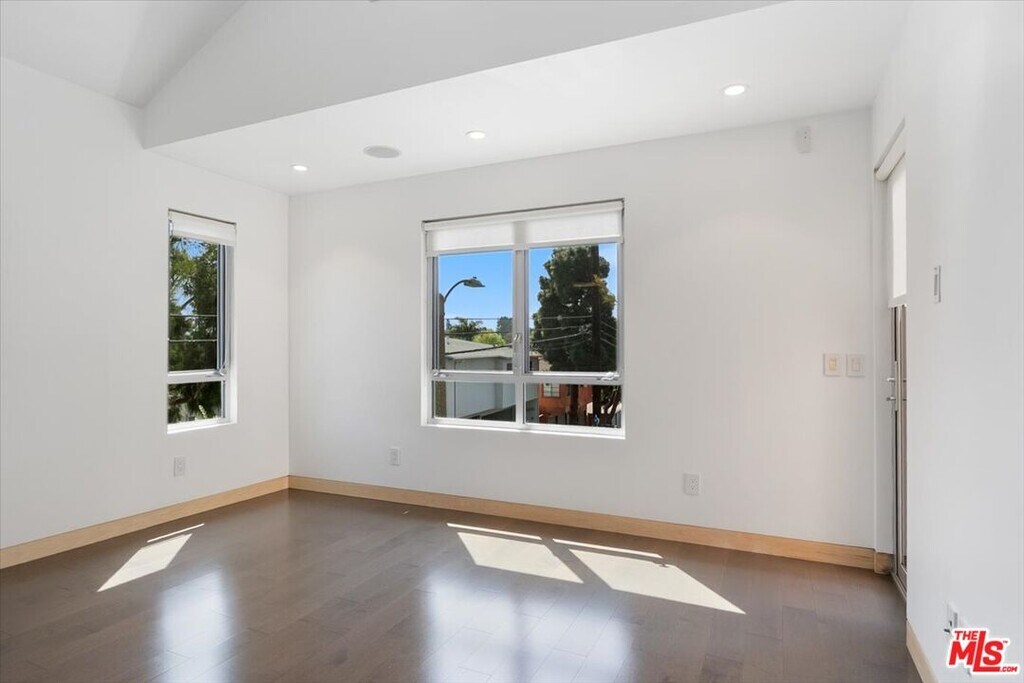 Erik Thordal-ChristensenExceptional 3-bedroom, 2.5-bath contemporary townhouse in the heart of Santa Monica offering a rare combination of architectural sophistication and resort-style amenities across approximately 1,550 sq ft of thoughtfully designed living space. The expansive open-plan living and dining area features polished concrete floors, tray ceilings, recessed lighting, in-ceiling speakers, and a wall-mounted fireplace. Floor-to-ceiling windows and sliding glass doors flood the space with natural light and open to multiple private outdoor areas including a landscaped ground-level patio and an upper balcony with frameless glass railings. The chef's kitchen is appointed with custom wood cabinetry, stone countertops, glass tile backsplash, professional 6-burner gas range, double wall ovens, built-in microwave, and stainless steel appliances. Generously sized bedrooms feature soaring vaulted ceilings and dark hardwood floors. The primary suite includes a custom walk-in closet with built-in cabinetry, a spa-inspired bath with dual vanities and glass-enclosed rain shower, and a private terrace that leads to an exclusive rooftop retreat the perfect spot to unwind and soak up the California sun. A powder room services the main living level. A private in-unit elevator with wood-paneled cab provides seamless access to all levels a rare and coveted feature that sets this home apart. Additional highlights include an in-unit washer/dryer and two assigned spaces in the secured underground garage. Gated entry. Minutes to the beach and Main Street.