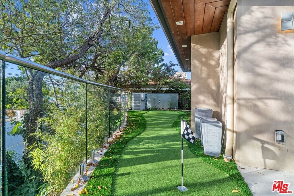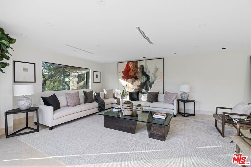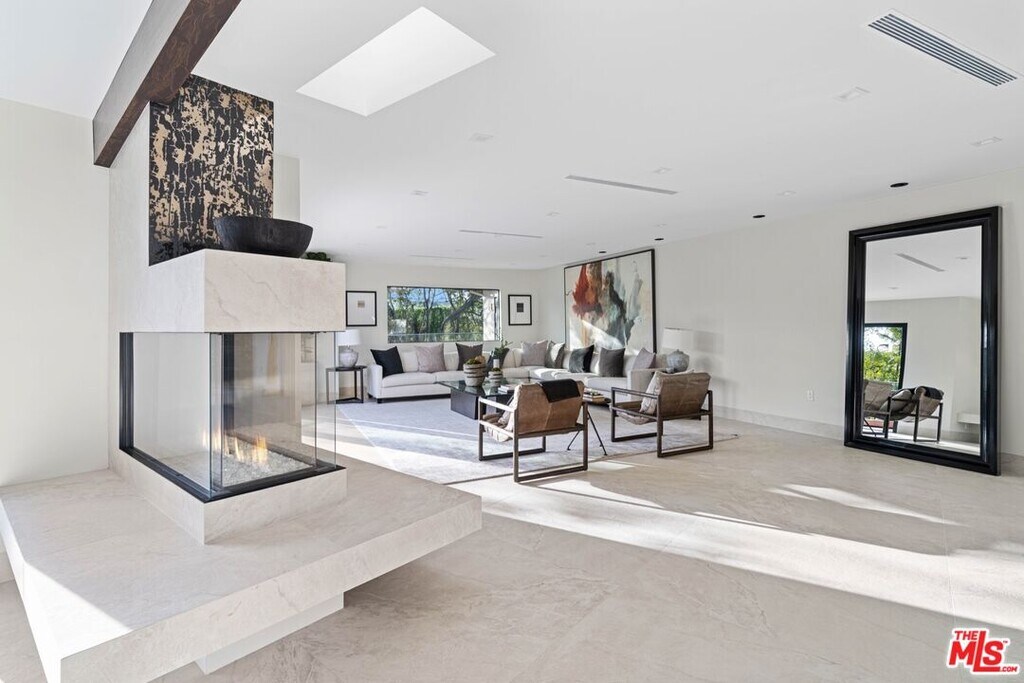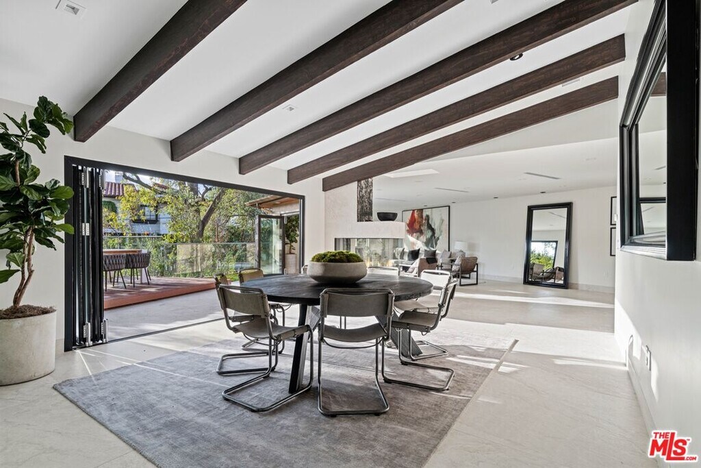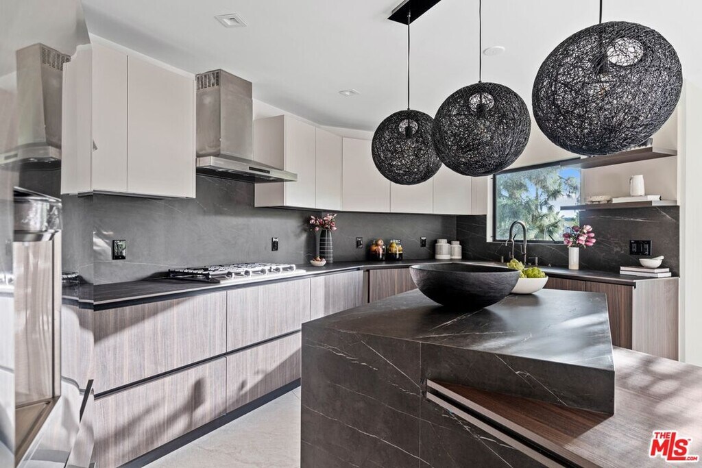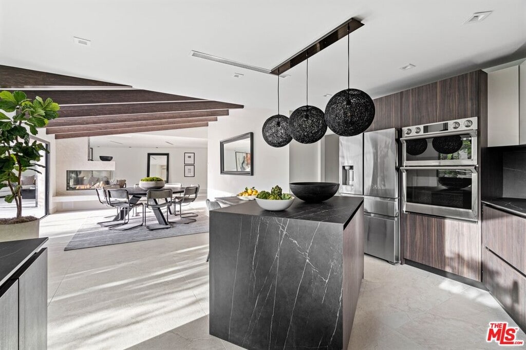Sophisticated Mid-Century Modern 3 bed/2.5 bath with incredible newly remodeled contemporary finished interior located on tucked away Bel Air cul-de-sac street. Inviting double doors open to formal entry and chic open floor plan filled with natural light. Spacious living room with incredible wall of bi-fold doors opening to back deck and greenery views, double sided fireplace connecting the open space of dining room and modern open kitchen. Ideal indoor/outdoor dining and entertaining options with dining room opening with 2nd set of bi-fold doors to deck and yard complete with putting green. Totally remodeled designer kitchen with dark quartz countertops including island with waterfall edge countertop, breakfast bar and high-end stainless steel appliances. Primary suite w/ French doors opening to backyard and greenery views, custom walk-in closet and beautifully tiled primary bathroom with double sinks, soaking tub and sleek curbless shower. Features include contemporary tiled flooring throughout, all updated bathrooms including 2 full bathrooms and one powder room, central ac/heat and no maintenance landscaped backyard with beautiful glass railing enclosure. Available immediately! MLS# 25617071