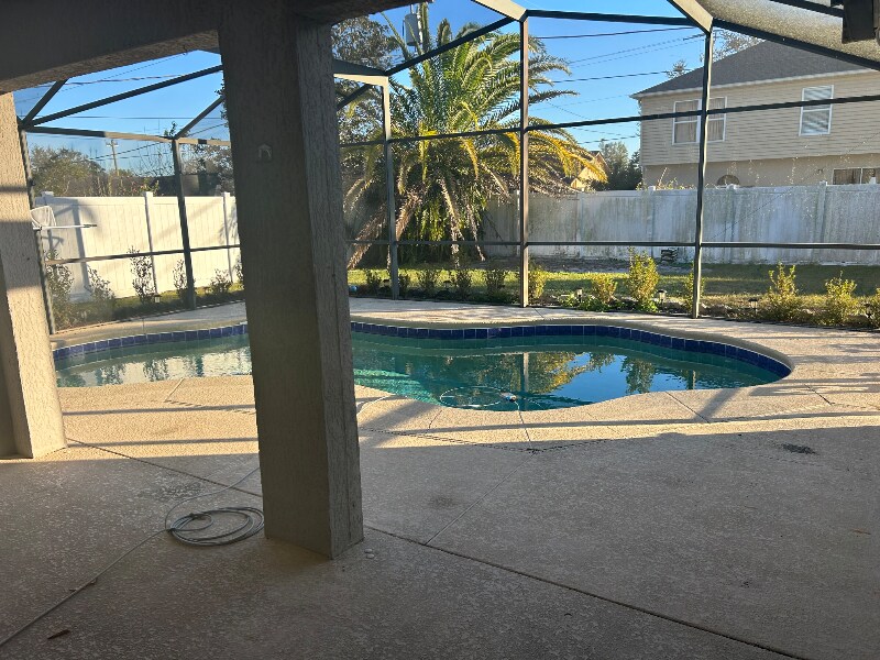 Property Id: 1614505 Property sits on a corner lot in a quiet neighborhood. Large front and backyard. Fenced backyard, screen in swimming pool. Upgraded flooring, ceiling. New roof, 80 gallon solar water heater.