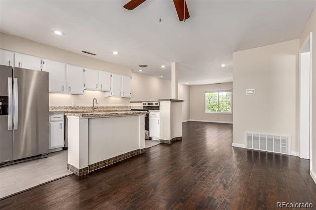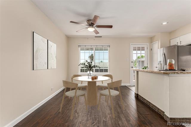 Make this well-appointed top floor corner unit condo, steps from The Streets of SouthGlenn, yours today! Updated, easy to maintain, wide plank flooring in the generously sized living room and dining room. Very open kitchen that most of these units don’t have as the typical setups are two sets of overhead cabinets. The kitchen also features slab granite counter tops and updated stainless steel appliances. All newer energy efficient windows, new roof in June 2025 and a freshly re-finished bathtub. Recessed dimmable lighting installed throughout unlike most units that have no installed lights. New storm door installed in June 2025. The upper floor corner location is perfect for a lack of neighbors, especially those above! Tons of natural light and usable outdoor space featuring a freshly painted porch area and large breezy back balcony. Super convenient in unit stackable washer and dryer and central AC! Secure storage unit included, located in building X, for all of your extra stuff. The reserved parking lot space # 390 is just across from the mail boxes and there is ample off street parking right in front of the building. Numerous desirable amenities and expenses covered by the HOA include the Glenn Oaks Community Center which offers, secure access to the indoor swimming pool, fitness center, billiards and the clubhouse. The expenses that are covered include gas, exterior insurance, irrigation water, maintenance grounds, exterior maintenance including the roof, snow removal, trash, sewer & water. Just a short walk to The Streets at SouthGlenn with all that it offers like Snooze, Whole Foods, Indulge Wine Bar, the movie theater, the library, coffee shops and tons of other shopping and dining options. There is the gorgeous, landscaped, Commons Park as well! Condominium MLS# 4994886