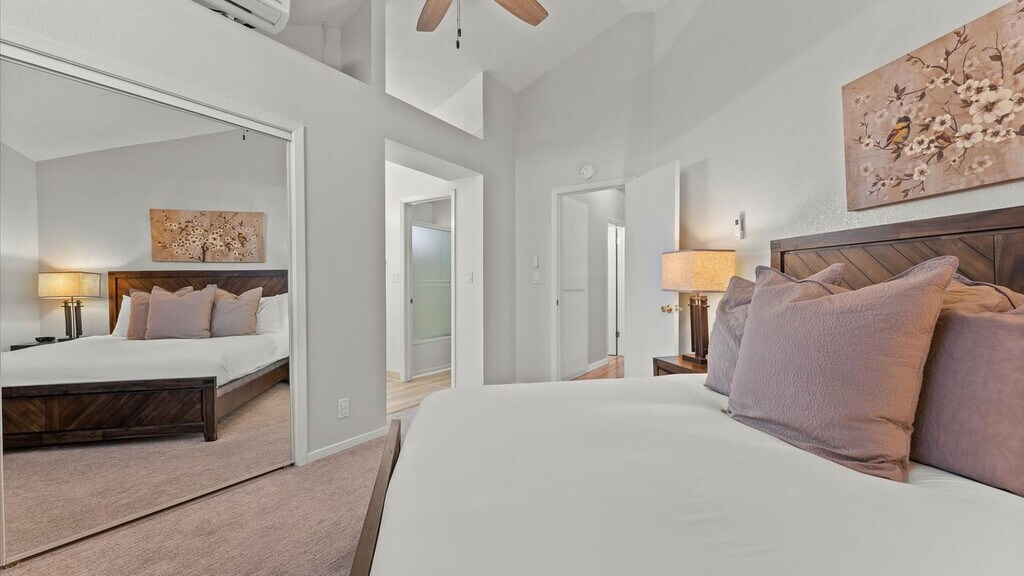 Unwind and feel at home in this charming city-side retreat. This property features three spacious bedrooms and 2.5 pristine bathrooms. This home features a fully equipped kitchen and complimentary amenities to enhance your stay, including a coffee and tea starter pack, Netflix, fast and free Wi-Fi, dedicated workspaces, and a private garage. The kitchen comes with basic cooking equipment, dishware, silverware, a refrigerator, microwave, stove, oven, and a Keurig coffee machine. The living room offers a plush sofa, ample seating, a cozy fireplace, large windows, soft lamps, and a Smart HDTV. Enjoy the natural beauty of Reno from the private deck in the backyard. The dining area accommodates up to 6 guests around the rectangular dining table. Nestled just 3.5 miles from downtown and close to local shops, parks, and vibrant eateries, this home offers the perfect mix of relaxation and convenience. Reno, Nevada, and the surrounding area offer a wide variety of indoor and outdoor recreational activities. With excellent weather, residents and visitors can enjoy nearby Lake Tahoe and the largest concentration of ski facilities in the world, all within a fifty-mile radius. Outdoor activities such as biking, camping, hunting, fishing, and mountain climbing are popular among residents and visitors. Kayaking and paddleboarding are available behind the marina waterfront building. Located minutes from the Row, which includes Circus Circus, El Dorado, and the Silver Legacy Casinos, you can try your luck at gambling or catch a great show. The National Bowling Stadium, where professional bowling tournaments are held, is also located downtown, just blocks from the Row. The Riverwalk, featuring the Truckee River on one side and world-class restaurants on the other, is a great place to people-watch, enjoy a meal, take in the view, and visit a microbrewery or two just south of the main downtown area. Reno and the surrounding area offer a variety of local attractions for visitors to enjoy. Carson City, the state capital, is a great place to learn about the history and culture of Nevada. Carson Street offers shopping and dining options. Lake Tahoe, a natural wonder, offers a variety of outdoor activities like hiking, swimming, and boating. Meadowood Mall is a great place for shopping and entertainment. The National Bowling Stadium, located at 300 N Center St, is a must-see for bowling enthusiasts hosting professional tournaments. Mount Rose Ski Resort, located on Mount Rose Highway, is a popular spot for skiing and snowboarding. The Reno Sparks Convention Center, located at 4001 S. Virginia St, is a great place for events and conferences. The University of Nevada - Reno, located at 1664 N. Virginia St, offers visitors a chance to explore the campus and learn about the university. Finally, Downtown Reno Casinos and Historic Virginia City offer visitors the opportunity to try their luck at gambling and explore the area's history. The full bathrooms are located in the primary bedroom and in the hallway, and the half bathroom is located in the hallway. All bathroom essentials are provided, as well as complimentary toiletries and plush bath towels. The showers come with lotion dispensers filled with vegan shampoo, conditioner, and body wash. This centrally located property gives you access to several transportation options. Catch a ride on the bus to explore the area's many parks and trails, or rent a Lime scooter or JUMP bike and enjoy the fresh mountain air as you explore the scenic routes. Certain dog breeds are not allowed, including Wolf hybrids, Pit Bulls, Rottweilers, German Shepherds, and Doberman Pinschers. Includes dedicated workspaces. [SI]