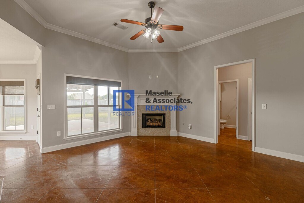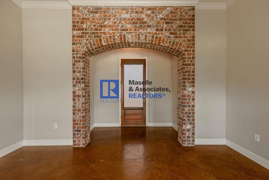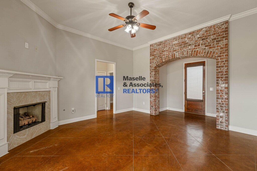 Adorable home situated on a corner lot with an amazing covered pergola in a private, backyard for lots of outdoor entertaining! It is the perfect spot to host BBQs during the day and fire pit parties at night! Entering the home the foyer greets you with an exposed brick archway leading into the family room with a corner gas fireplace. Scored and stained concrete floors throughout means no carpet anywhere! Custom blinds in living areas. The kitchen is a dream with lots of granite countertop space, stainless steel appliances, an eat-up bar, and a breakfast area. Master bedroom has trey ceilings lined with tongue and groove wood. The master bath has double vanities, large tub, separate shower, water closet, and large walk-in closet. Off of the kitchen is a large office with lots of built-ins and a laundry room with additional storage. Across the home are two other bedrooms that share a hall bath with granite countertops. Two-car garage with storage area. Providence is a gated neighborhood with a community pool. Close to I-55 and Germantown Middle and High Schools
