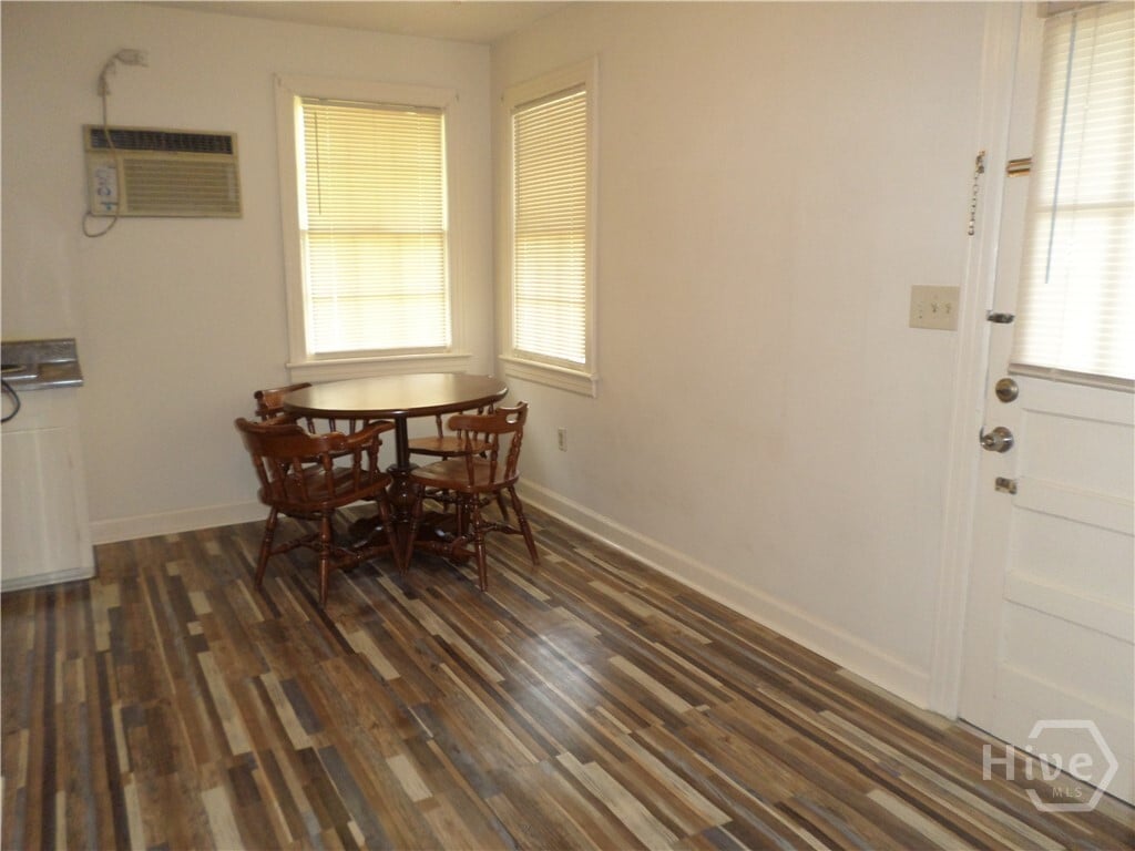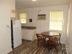 Efficiency one bedroom apartment with kitchen/dining/sitting area combo. New flooring throughout. Kitchen comes with refrigerator and surface top two burner. No oven. Would need to get countertop bake oven. Has separate parking pad in back off lane. Window Heat/Air pump. Within walking distance to shopping and restaurants.
