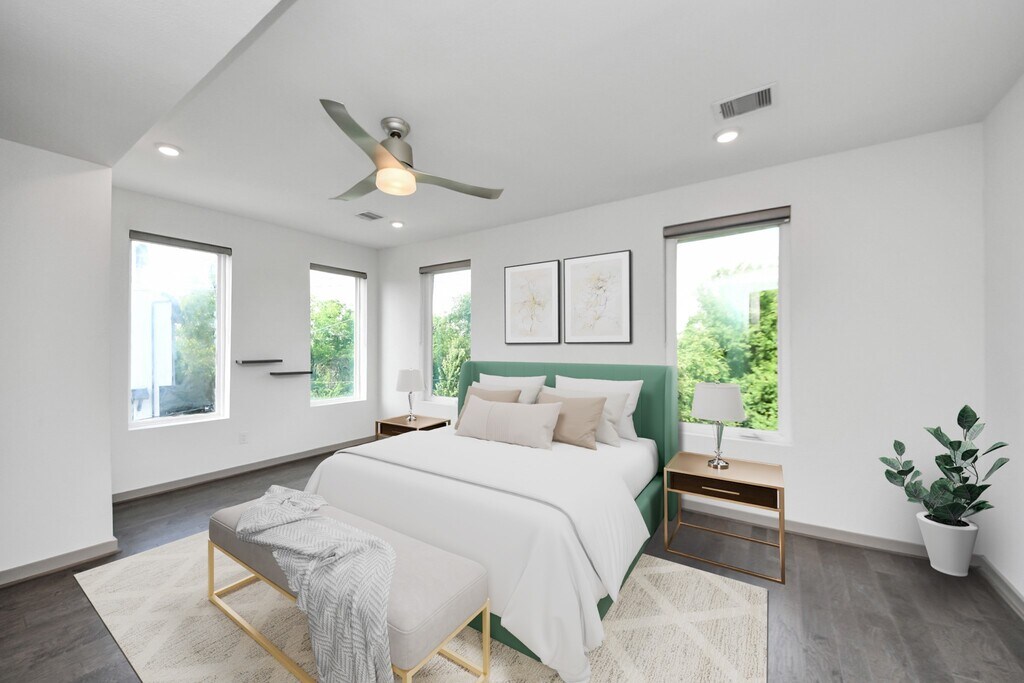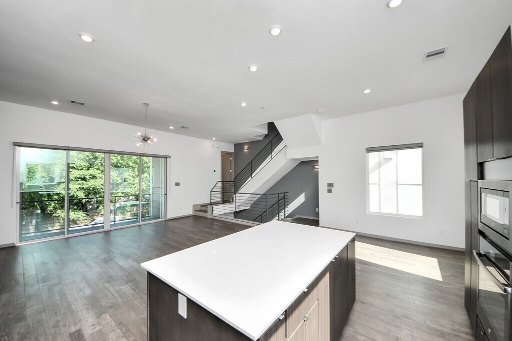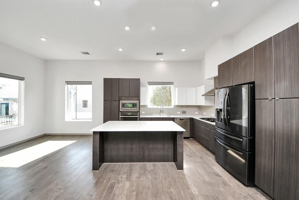 Modern four-story townhome in the heart of trendy Sawyer Heights — and the only unit in the community with a PRIVATE YARD and DRIVEWAY. Enter to find a modern home that includes an amazing open floor plan,hardwood floors throughout,and a PRIVATE balcony WITH SLIDING DOORS. Entertainment-ready,the gourmet kitchen has stainless steel appliances,QUARTZ countertops,stylish cabinetry,a tile backsplash,a center island w/seating,a pantry,and a gas range.Third floor boasts a spacious owner’s suite with BIG WINDOWS,a walk-in closet,and an ensuite owner’s bathroom with a soaking tub and upgraded double vanity. Finally,escape to your OVERSIZED rooftop terrace on the fourth floor with STUNNING DOWNTOWN VIEWS — perfect for morning coffee,evening wind-downs,or entertaining guests! Located minutes from the DOWNTOWN HOUSTON with easy access to major freeways I10 and 45. ALL appliances included! Refrigerator,washer & dryer. Check out 3D Tour or call for PRIVATE showing! MLS# 59262255