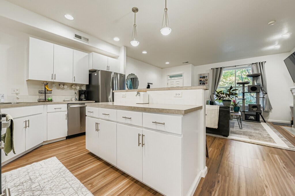 Light-filled end-unit 2007 townhome in a walkable pocket of Amberglen/Orenco—minutes to Whole Foods, Streets of Tanasbourne, Intel/Nike corridor, parks, cafés, and the Quatama MAX station. Corner exposure, gas fireplace, modern systems, and a smart two-level layout with bedrooms up. Main Level — Open & Functional * Open living/dining anchored by a gas fireplace and large corner windows * Island kitchen with built-in microwave, dishwasher, refrigerator, ample cabinetry, and generous prep space * Convenient powder room (½ bath) on main * Easy indoor/outdoor flow; durable, low-maintenance finishes Upper Level — Three Bedrooms + Laundry * Primary suite with walk-in closet and ensuite bath * Two additional bedrooms served by a full hall bath * Laundry on bedroom level for everyday convenience Parking, Comfort & Storage * Attached 1-car garage plus driveway and nearby on-street options * Gas forced-air heat and central A/C; double-pane windows * Thoughtful storage throughout Location Highlights * Sidewalks and nearby paths; moments to shopping, dining, and service retail * Quick connections to Hwy 26/217, Orenco Station, and neighborhood parks/trails KEY DETAILS * Rent: $2,304 / month (target; confirm before advertising) * Lease Term: 12 months * Security Deposit: Typically equal to one month's rent (subject to screening) * Pets: Case-by-case with screening; $50/pet/mo; assistance animals welcome per law * Smoking/Vaping: Not permitted anywhere on the premises * Appliances: Refrigerator, range, microwave, dishwasher; in-unit laundry on upper level * Parking: Attached garage + driveway * Move-in: On or before 11/01/2025 UTILITIES & COMMUNITY * Tenant pays all utilities. * Home is in a planned townhome community; resident must comply with community rules (copy provided upon request). No community fees are referenced in this listing. SCHOOLS (tenant to verify) * Lenox Elementary • Poynter Middle • Liberty High APPLICATION & SCREENING * All occupants 18+ must apply * Screening includes credit, criminal, rental history, and income verification * Applications processed in the order received once complete; full criteria provided to all applicants * Renter's insurance required (? $100,000 liability) ACCESSIBILITY & NOTICES * This home is not an ADA accessible dwelling unit * Reasonable accommodations/modifications considered in accordance with Fair Housing laws * Information deemed reliable but not guaranteed; applicants should verify square footage, features, school boundaries, and community policies before applying Offered by: Spear Northwest, LLC — Property Management?Marketing materials are for general information only and may not reflect current property condition; availability/terms subject to change until a lease is signed. Orenco/Quatama area townhome near Tanasbourne & tech corridor.