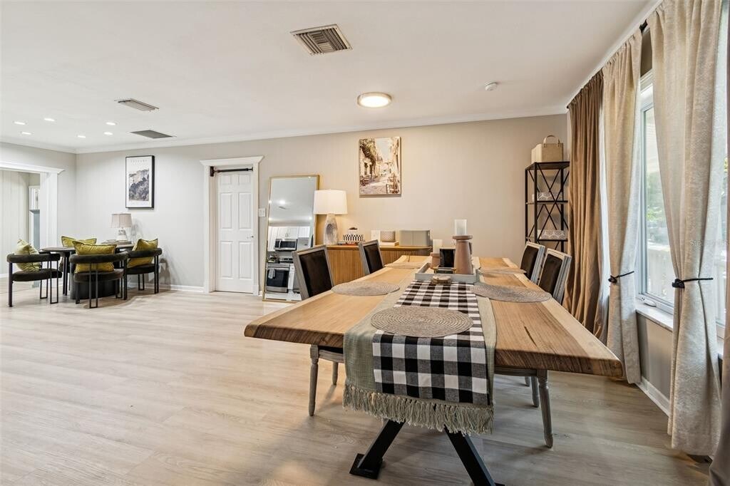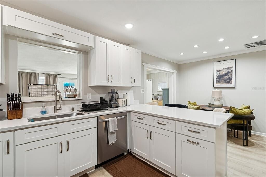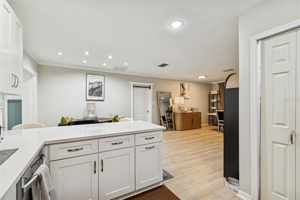 This beautifully remodeled 4-bedroom,3-bathroom home sits on an oversized corner lot in one of South Tampa’s most desirable locations — just minutes from Bayshore,Fred Ball Park,and the vibrant restaurants and nightlife of South Howard. The home has been thoughtfully upgraded with new flooring throughout,new kitchen countertops,new cabinetry,and quality finishes,making it completely move-in ready. As you enter,you're welcomed by a wide entryway and a cozy sitting room to the right,creating a warm and inviting first impression. The spacious,fully upgraded kitchen features brand-new countertops,updated cabinets,a built-in bar,and counter seating — perfect for entertaining family and guests. Toward the rear of the home,you’ll find a dedicated dining area and a large family room that opens seamlessly to the backyard and covered porch,ideal for indoor-outdoor living. The layout offers flexibility and privacy,with one bedroom and full bath tucked away separately. Down the hall are two additional bedrooms and the primary suite,which includes an adjoining den or sitting area — perfect for a home office,nursery,or private retreat. Outside,the expansive yard provides plenty of space to host gatherings,create a pool oasis,or design your dream outdoor entertaining space MLS# TB8475987