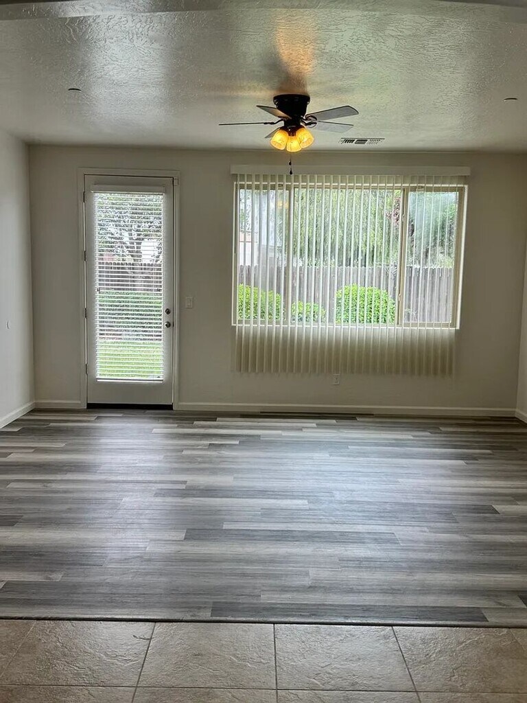 Beautiful Home! Move in ready! in Visalia, CA — this well-maintained 4-bedroom, 2-bath residence offers practical, attractive living spaces. Hardwood flooring flows through much of the home, while granite countertops and a built-in microwave highlight the kitchen, which also includes a gas stove. The primary bathroom features a separate tub and shower, and walk-in closets provide generous storage. Indoor laundry and central air and heating add everyday convenience and comfort.