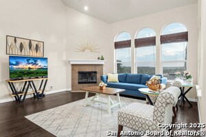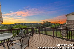 Stunning Greenbelt Home with Outstanding Views! Live in the highly sought-after Mountain Lodge subdivision (Stone Oak area) with resort-style amenities and breathtaking Hill Country views. This 4-bedroom, 2.5-bath, 2,583 sq. ft. home offers comfort, convenience, and luxury living in a secure gated community. Home features include beautiful hand-scraped Hickory wood floors in Dining Room, Family Room, Primary Suite, Stairs & Landing. Spacious open floorplan with 2-story Family Room & foyer. Island kitchen with butler pantry, gas cooking, stainless appliances and stylish glass-tile backsplash. Primary bedroom downstairs for privacy & ease. Upstairs includes 3 bedrooms + large game room. Corner fireplace in Family Room with abundant natural light. Large deck with spectacular bluff views for ultimate relaxation & entertaining. Greenbelt walking trails are accessible from the backyard. Huge walk-in attic provides for lots of storage. Refrigerator, washer, dryer, garage door opener, irrigation and water softener included. Gated community with 2 pools, security features offers resort-like living. Top-rated NEISD schools: Tuscany Heights Elementary, Barbara Bush Middle, and Reagan High School. Easy access to US-281 & Loop 1604, near Canyon Springs golf course, hospitals, Stone Oak medical center, shopping, and dining.