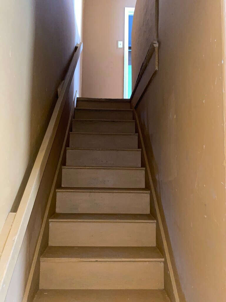 Kitchen, laundry, and living room are on first floor. All bedrooms and bathroom are on second floor.