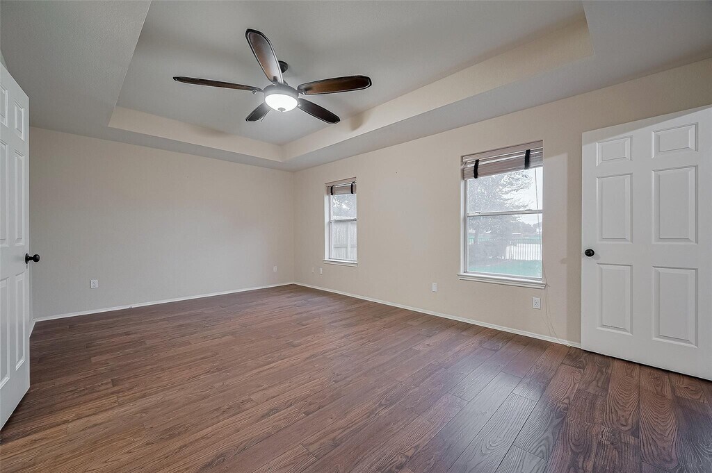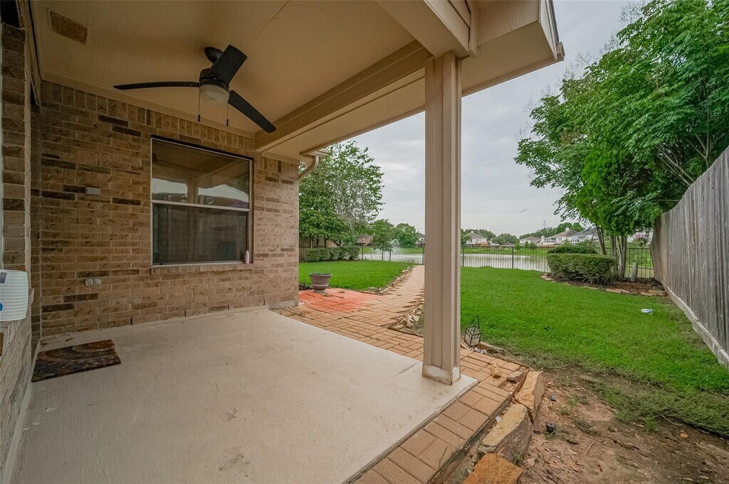 Exquisite two-story house boasts a stunning lakeview.Ideally situated near 99 & Westpark Tollway.Elegant wood flooring graces the entry,dining room,master suite & all bedrooms.Kitchen,breakfast nook & all bathrooms feature stylish ceramic tile.The primary bathroom has been beautifully remodeled,modern sink & faucet,updated light fixture,toilets,a new shower door,enclosure & an added steam shower feature.The kitchen has been tastefully renovated with luxurious granite countertops,stainless steel appliances,an undermount farmhouse sink,a gooseneck faucet & a newly replaced stainless steel dishwasher.The den,entryway & breakfast area boast soaring high ceilings.Plantation shutters & Venetian blinds adorn every window throughout the home.Enjoy a lovely covered patio that offers a breathtaking view of the lake.New roof installed in 2024.Prime location provides easy access to shopping outlets-as Sam's Club,Best Buy,a variety of dining options,fitness centers,& grocery stores within a mile MLS# 74182830