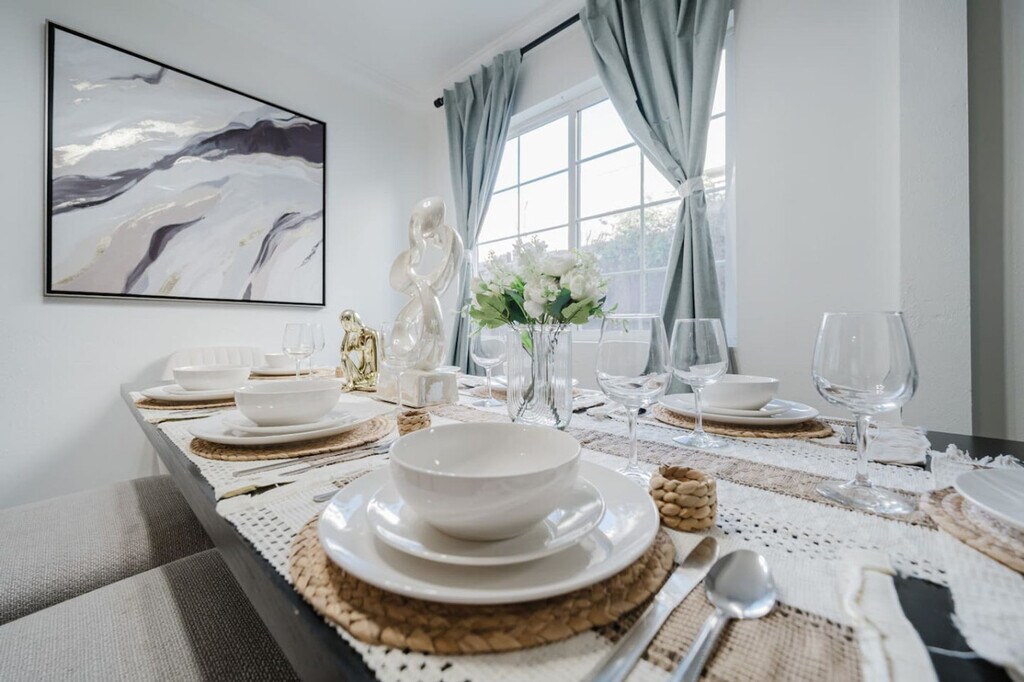 Welcome to this family home in National City! Feel at home in this 4-bedroom home that is 10 minutes from San Diego Gaslamp, Downtown, and the beach. The living area is air-conditioned and features a flat-screen smart TV and snug couches. The TV is hooked up to cable, with over 100 free local channels, plus Smart Roku for Netflix, YouTube, and Disney+. An Xbox 360 is available for entertainment. The kitchen is well-stocked with appliances, including a coffee machine, and essentials like coffee, cooking oil, sugar, and salt. Long dining tables and chairs both inside and outside the home give you places to sit and enjoy your culinary creations. There are 2 fully stocked bathrooms with shampoo, body wash, a hairdryer, and fresh towels. A washer, dryer, and detergent are available for laundry. Parking is available for up to 4 vehicles in the garage and on the driveway. Pets are welcome. This home is 3 minutes from large shopping centers and local restaurants. The spacious gated yard offers a barbecue grill, outdoor seating, and life-size games for kids and family. Excessive noise may lead to neighbor complaints or visits from local authorities, and a $1,000 violation fee may apply, as it could risk the suspension of the listing or your account. Unauthorized late check-outs may be charged twice the nightly rate due to cleaning and scheduling disruptions. Each unauthorized guest or pet may incur a $100 per person/pet per night fee. After 9 PM, all activities must move indoors with windows and doors closed to avoid disturbing neighbors. Fast 500 Mbps Wi-Fi is available. [SI]