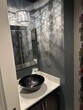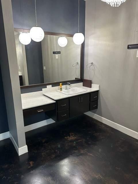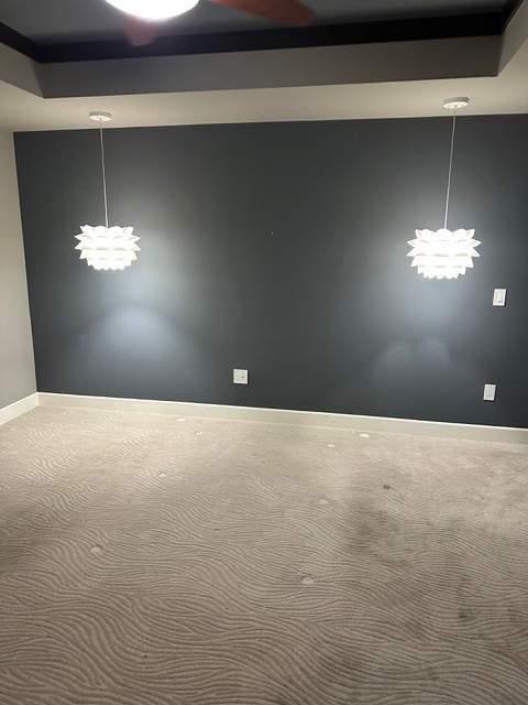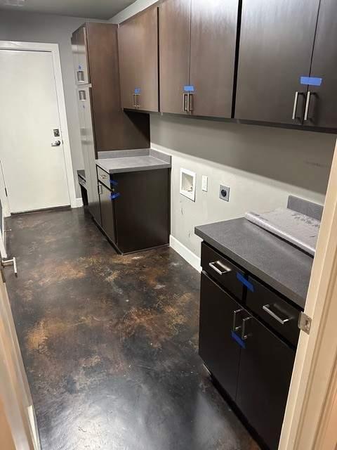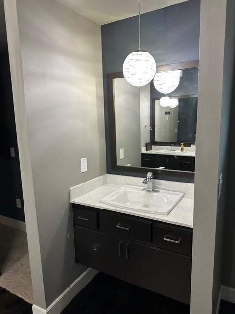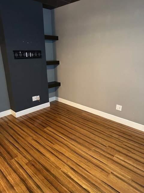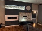 This beautifully designed home combines sleek modern finishes with warm,inviting touches. The open-concept kitchen features dark espresso cabinetry,quartz countertops,a spacious island with sink,stainless steel appliances,stylish pendant lighting,and a gorgeous tile backsplash. Perfect for both cooking and entertaining. The living area offers a contemporary fireplace with a striking stone accent wall,built-in shelving,and dramatic lighting features,creating the ultimate cozy-yet-modern space to relax or entertain guests.