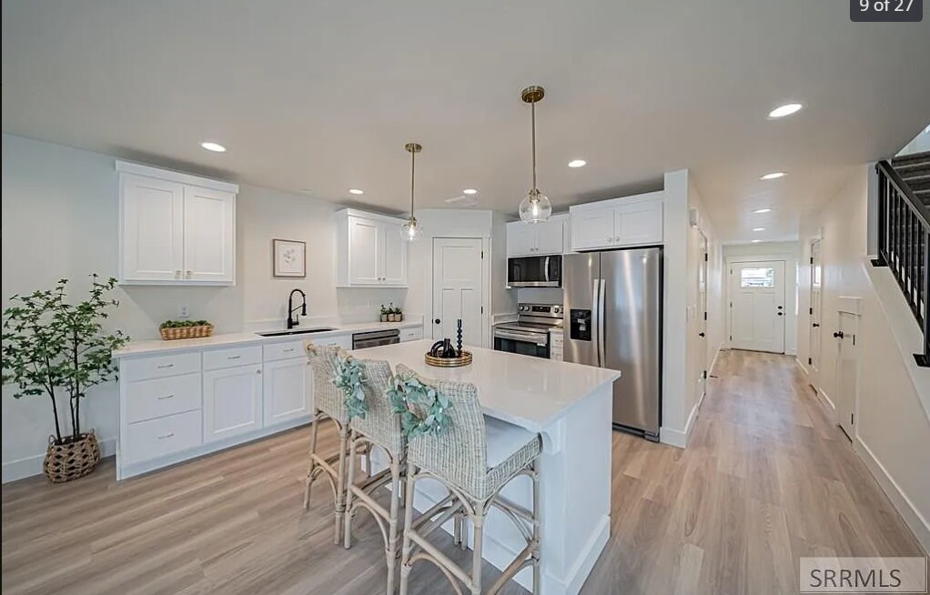 Beautiful new construction townhome in Blackfoot. You will love this new home with classy finishings. The oversized windows and beautiful lighting give a warm homey feeling throughout. The open floor plan has room for the whole family with quartz island sitting and large pantry. The deep garage has room for your car and storage. With the long driveway you will have space for a second car. Upstairs you find the main bedroom with abundant space, including a walk-in closet and in-suite bathroom with double vanity. Just down the hall you find a large laundry room, guest bathroom and two more bedrooms with large windows and great closets with built in shelving. This well-organized town house development will have space for guest parking and a community playground. Rent for Middle units (3 available) $1650 + $169.00 Fee. Rent for end units (1 available) is $1750 + $169.00 fee One year lease. Utilities are not included. Pets are allowed with the following requirements: Maximum of two pets under 40lbs and over 2 years old. There is a $75 rent addition for EACH pet, no additional rental deposit is required. However, if pets are in the unit the deposit for the lease will be completely non refundable. Damage incurred during the duration of lease that extends beyond the cost of the deposit will be the tenants responsibility. Pet interview will also be required. Please also note, any animals that are allowed in the apartment will need to follow the HOA bylaws regarding noise and nuisance. Tenants pay for all utilities, as well as a monthly HOA/Internet fee of $169. Pets are negotiable, upon application these terms can be discussed.