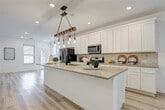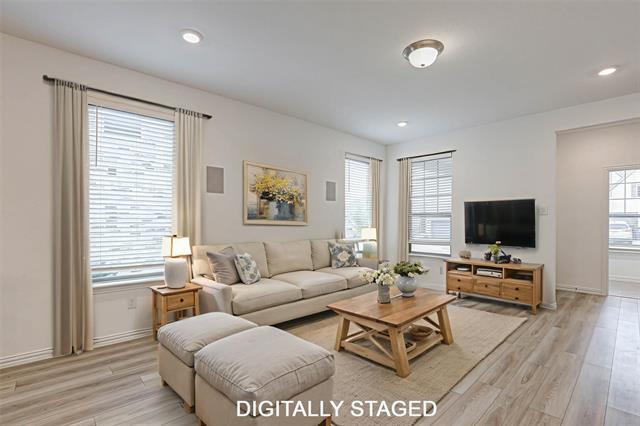 Diane GroveSpacious open-concept layout with family room, dining, and kitchen designed for comfortable living and effortless entertaining. The living area features surround sound, while the chef s kitchen boasts a large island with quartz countertops and seating for four, abundant counter space and cabinetry, a walk-in pantry, and a refrigerator included (a new refrigerator will be provided). A separate utility room with a washer and dryer included adds convenience. The split primary suite offers privacy, with a bath showcasing dual sinks and an oversized shower. Secondary bedrooms provide ample closet space, and the additional bath is finished with oversized tiles. Exterior highlights include a covered front porch and back patio. The HOA maintains the front yard; the tenant is responsible for the side and backyard upkeep. Rear-entry 2-car garage with alley access. Community amenities include an in-ground pool with a cabana, playground for the kids, clubhouse, fitness center, jogging path, park, and sidewalks perfect for an active lifestyle.