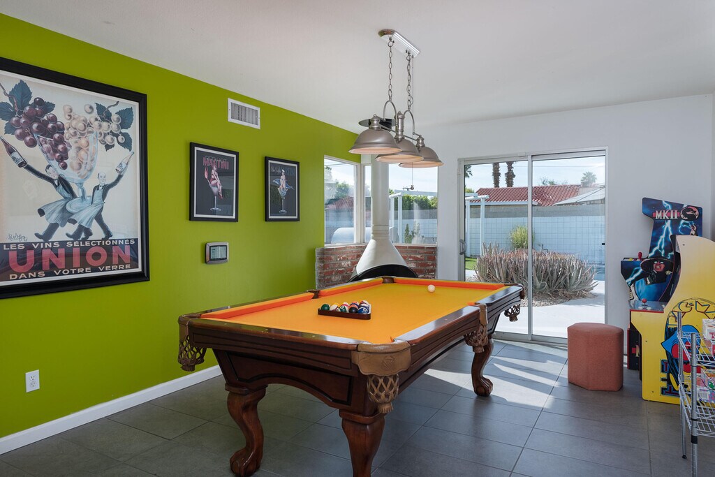 ***ANNUAL LEASE***A Hugh Kaptur Desert Park Estates classic! Bright and playful Palm Springs retreat! This spacious home boasts a large private pool,spa,firepit,Bikes,oversized BBQ grill,and multiple outdoor lounges. Inside,enjoy vibrant mid-century décor,a game room with a pool table & arcade,XBOX,and a bunk room perfect for families. Don't forget your Tesla with the convenience of Level 2 charging at the property. Step into one of the largest 3-bedroom homes in the area,designed for unforgettable comfort. Hollywood Springs blends mid-century modern charm with vibrant pops of color,offering a stylish retreat perfect for family and friends. With 3 bedrooms,2 bathrooms,and 5 beds,it comfortably sleeps up to 6 guests. The open-concept living space is bright and airy,with iconic mid-century furnishings,a smart TV,and sliding glass doors leading to the backyard oasis. The fully equipped kitchen makes it easy to prepare meals or cocktails,while the adjacent dining area invites everyone to gather and connect. For entertainment,head to the dedicated game room featuring a pool table,vintage arcade machine,and funky décor that's as Insta-worthy as it is fun. Outdoors,your private resort-style space awaits. Lounge by the sparkling pool,unwind in the soothing spa,or enjoy movie nights on the covered patio with its smart TVperfect for streaming your favorite shows while dining al fresco. The private yard also offers breathtaking mountain views and a grassy area ideal for kids and pets to play safely. Plus,with a Level 2 EV charger on site,you can recharge your vehicle as easily as you recharge yourself. Palm Springs,Hollywood Springs gives everyone plenty of room to relax and recharge. Whether you're lounging poolside,exploring nearby shops and restaurants,or enjoying game nights indoors,this home promises your own unforgettable desert getaway! Call now for more information and setup a private viewing.