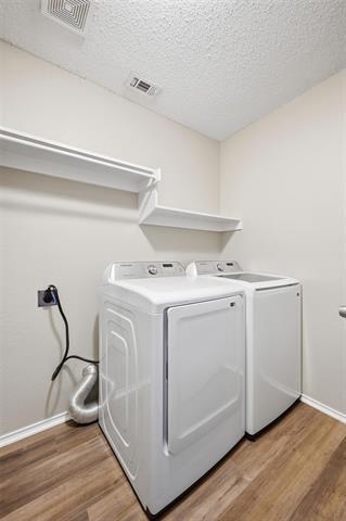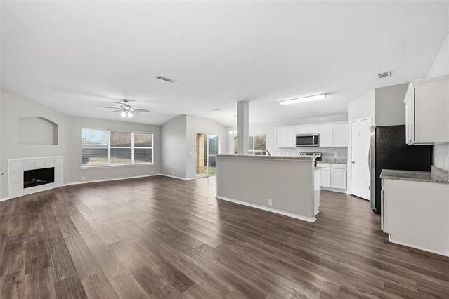 Welcome to this well-maintained, 3 bedroom, 2 bath home in a great Little Elm community, within the highly sought-after Frisco ISD. This charming home features an inviting interior offering a bright open floor plan, along with a dedicated dining area and breakfast nook. The kitchen is equipped with granite countertops and stainless steel appliances. Flooring throughout the home is a blend of modern luxury vinyl plank and carpet providing both comfort and easy maintenance. The private primary suite offers a relaxing retreat with a garden tub and separate walk-in shower. Two additional bedrooms and a full bathroom complete the home. The spacious backyard provides plenty of room to run and play along with 2 sheds that are provided for additional storage. Enjoy access to the community pool and playground. $10 monthly admin fee applies.